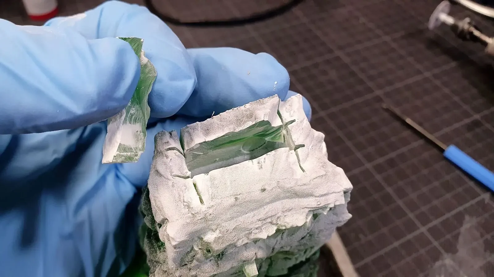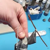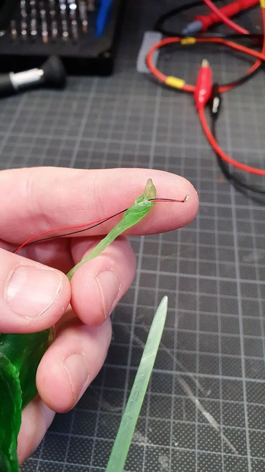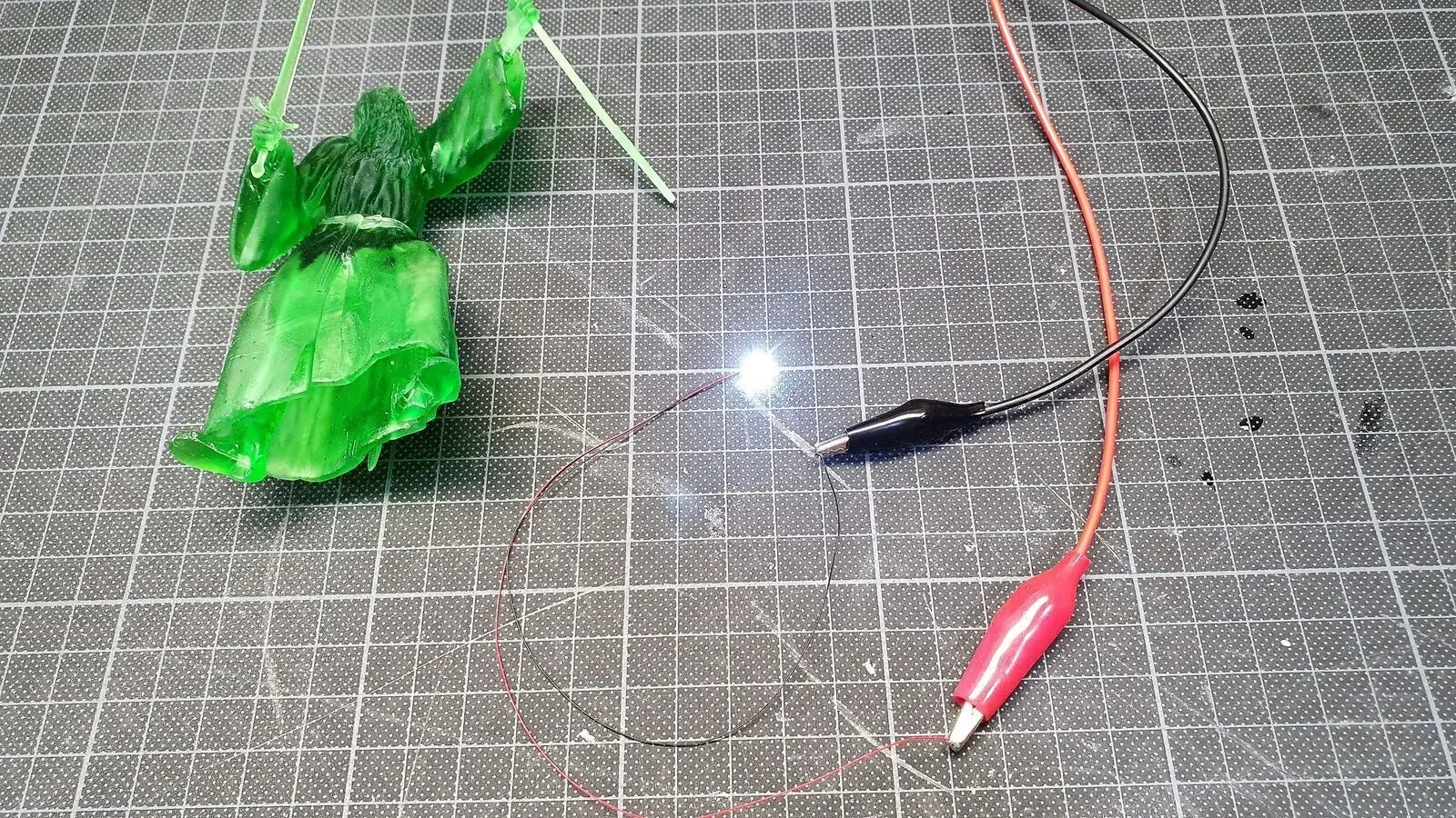 Zudem habe ich seinen Stab mit einem Micro-LED versehen und mit sehr viel Geduld die Kabel verlegt sowie eine Öffnung in die Base gemacht. Damit diese Veränderungen nicht auffallen, habe ich diese mit Milliput “Weggespachtelt”.