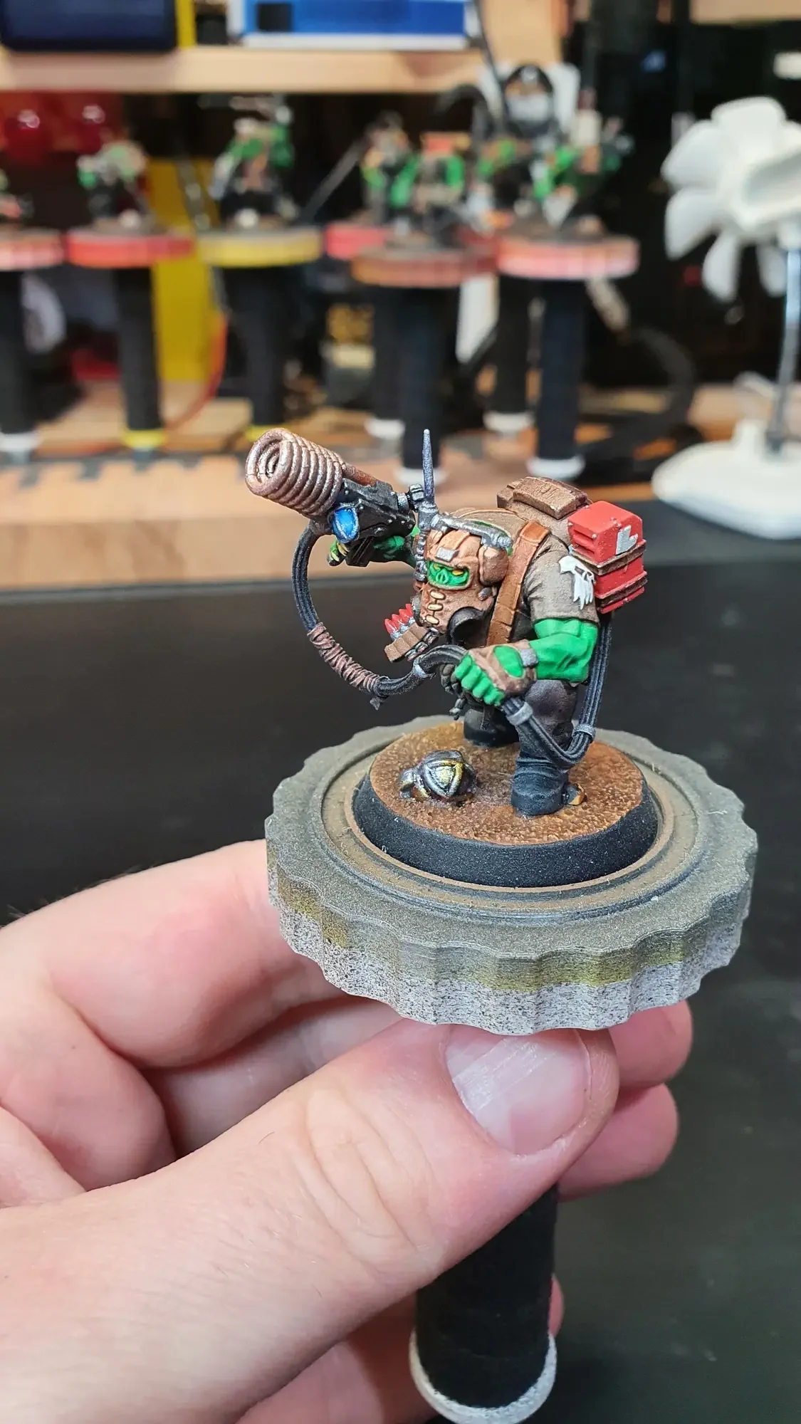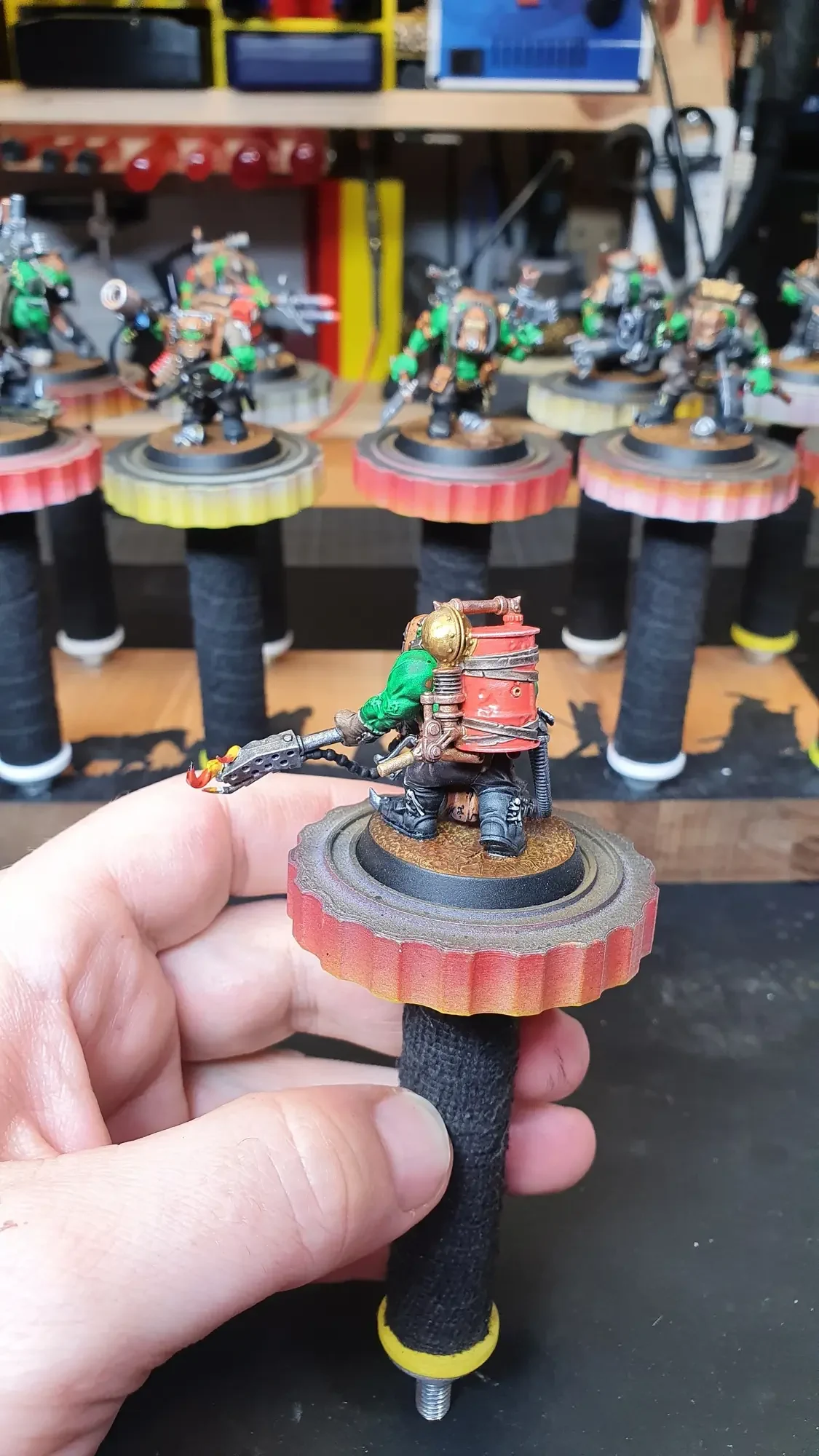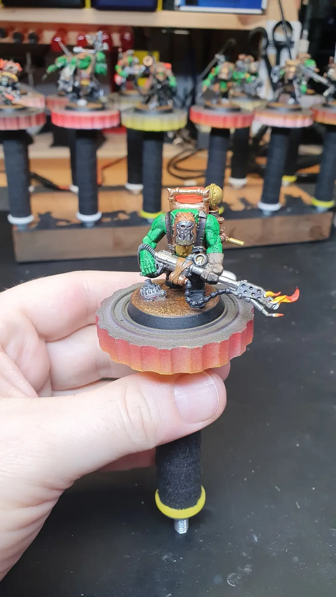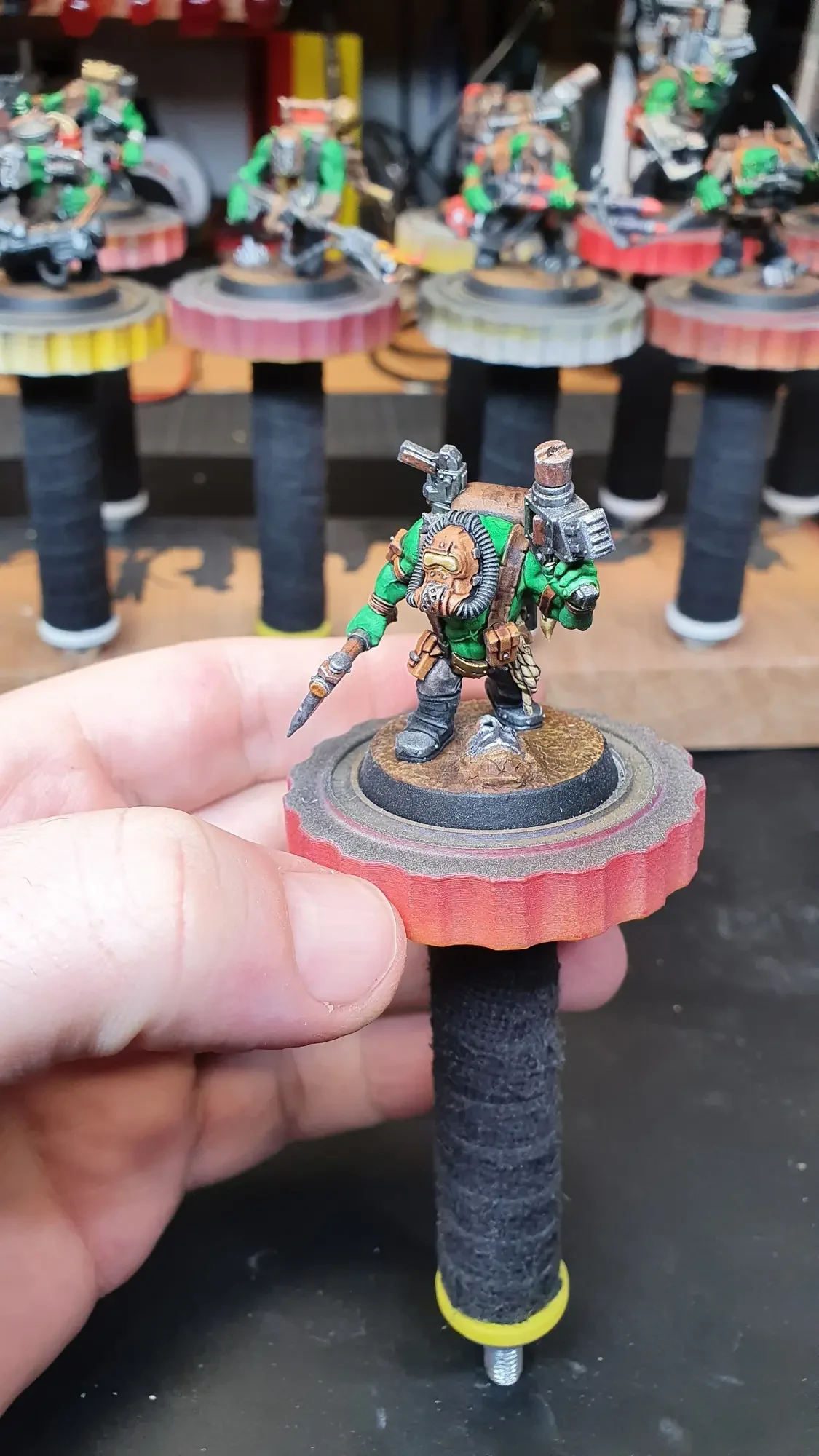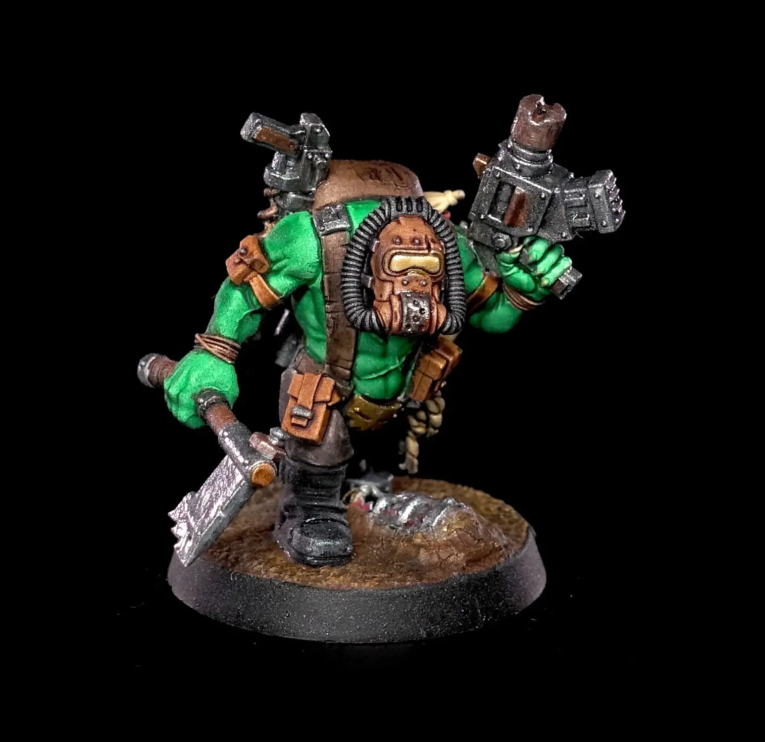 Aus der Kill Team Box Octarius von Games Workshop stammen die Ork Kommandos. Die reinen Mal-Arbeiten dauerten ca. 20 Stunden. Am Anfang ging es dank den Speed-Paints relativ schnell, aber all die Details der 12 Modelle dann hervor zu heben dauerte schlussendlich viel länger als erwartet.