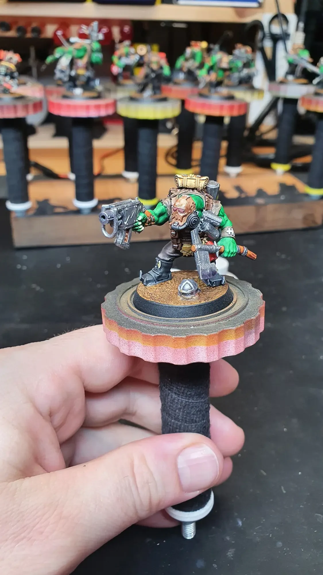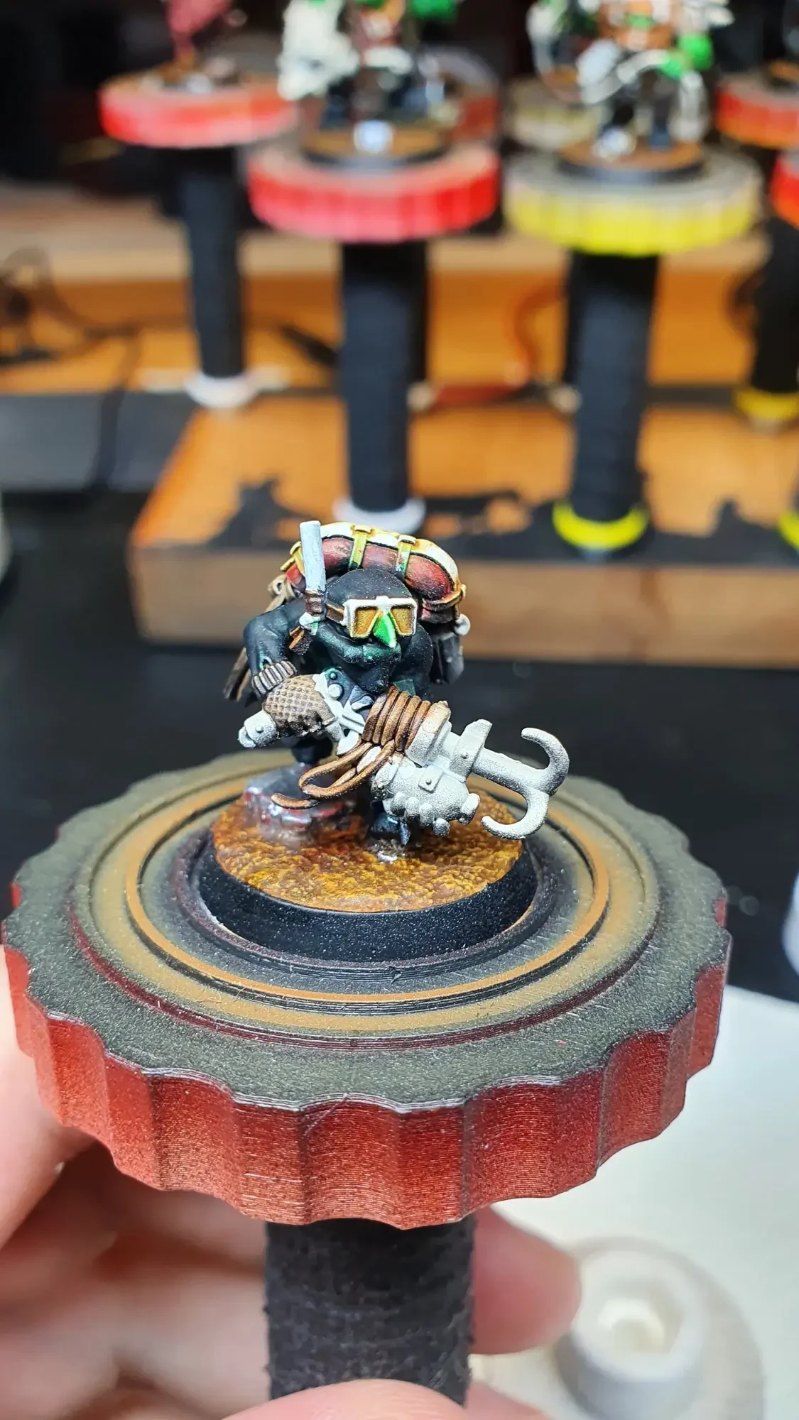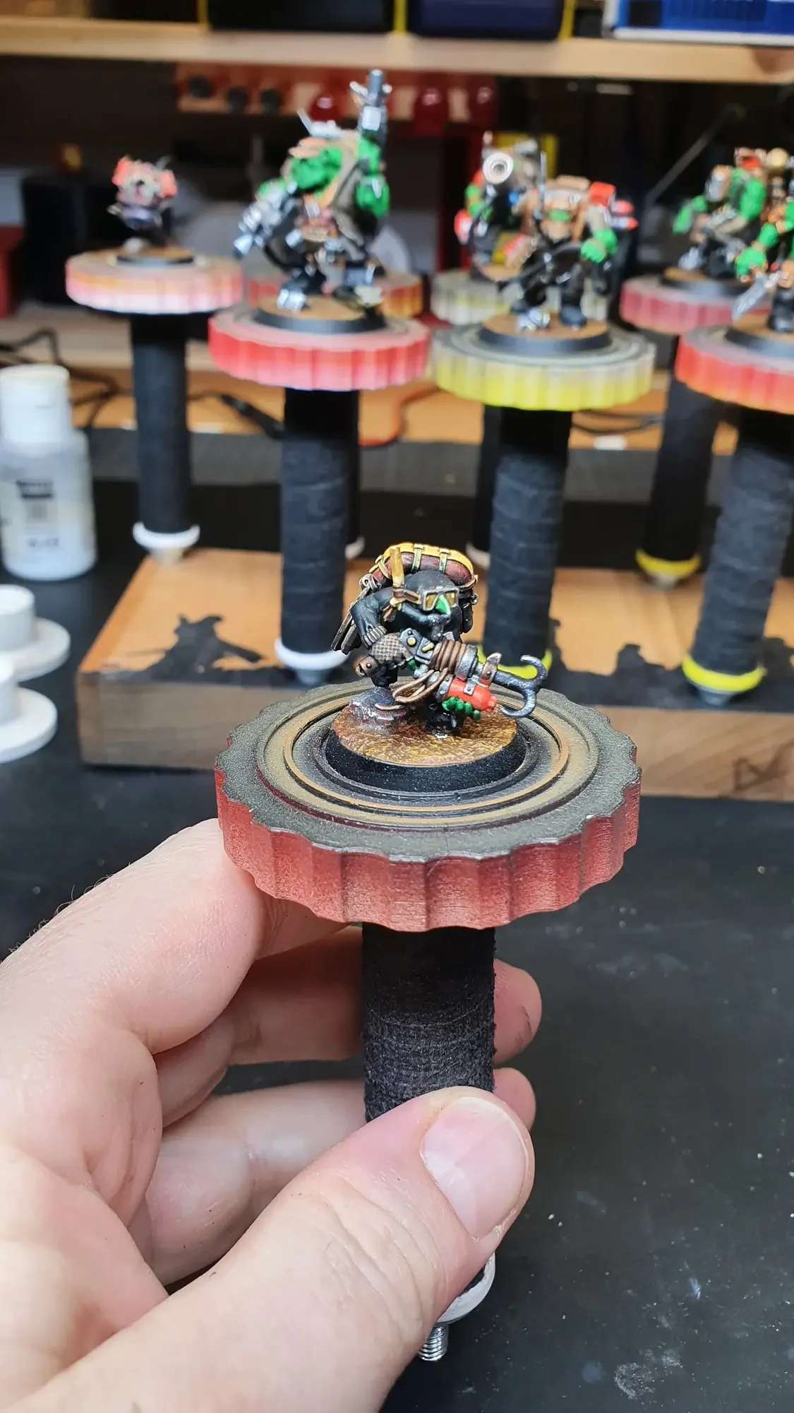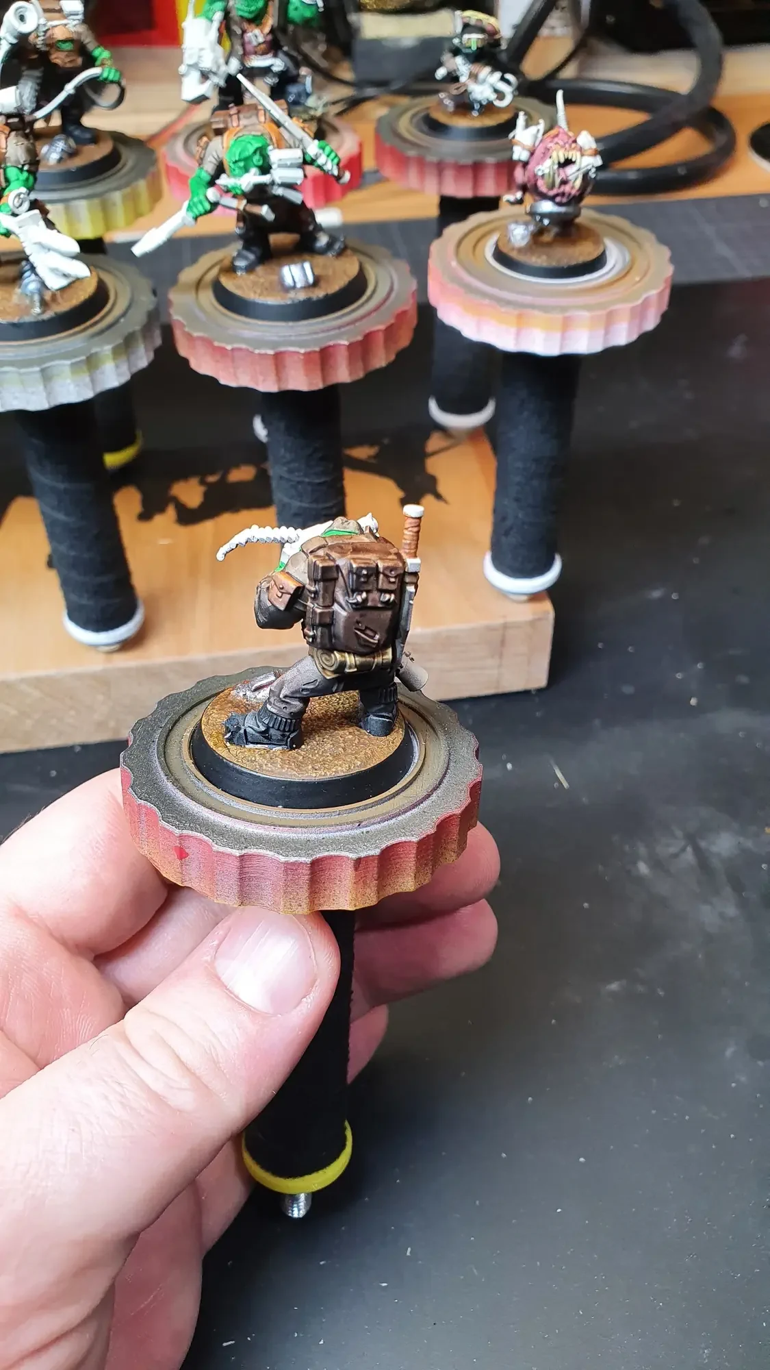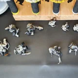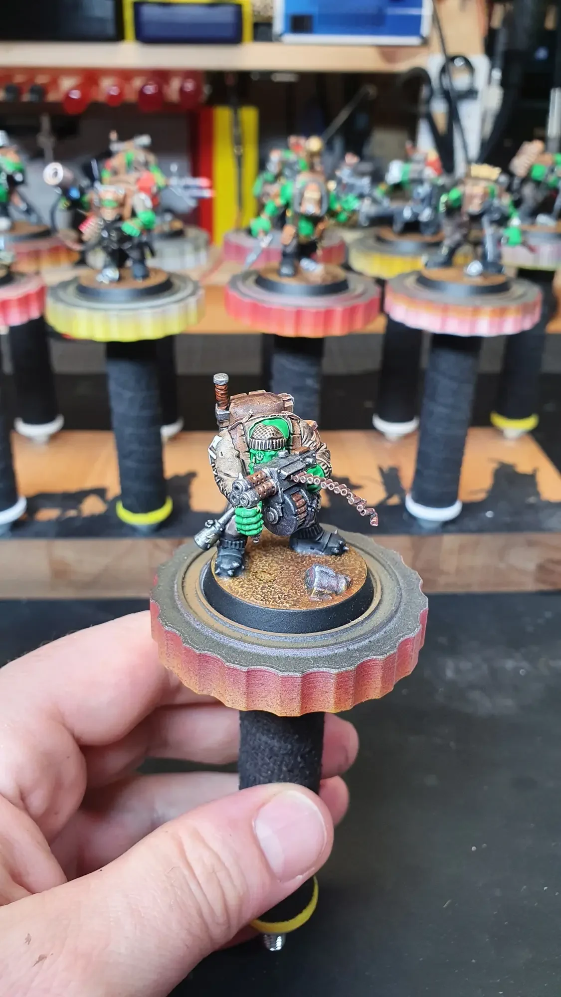 Aus der Kill Team Box Octarius von Games Workshop stammen die Ork Kommandos. Die reinen Mal-Arbeiten dauerten ca. 20 Stunden. Am Anfang ging es dank den Speed-Paints relativ schnell, aber all die Details der 12 Modelle dann hervor zu heben dauerte schlussendlich viel länger als erwartet.
