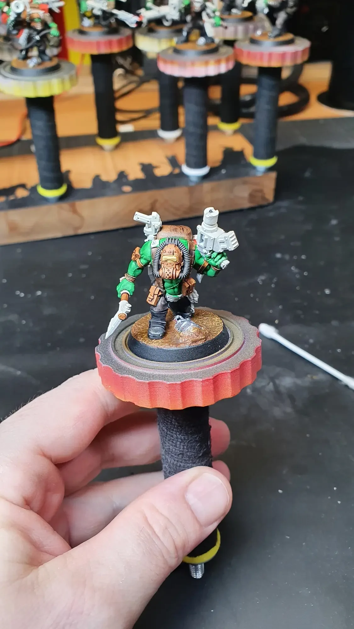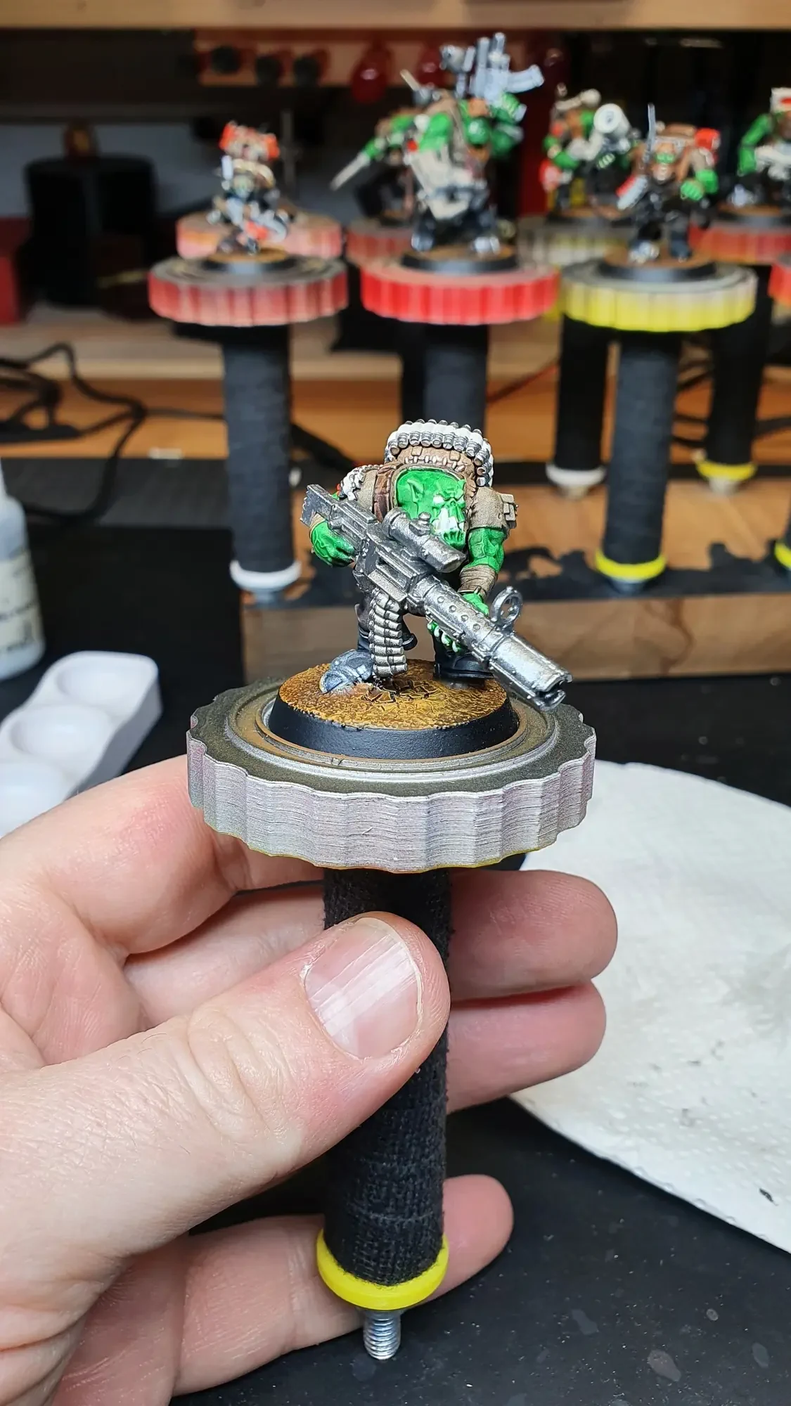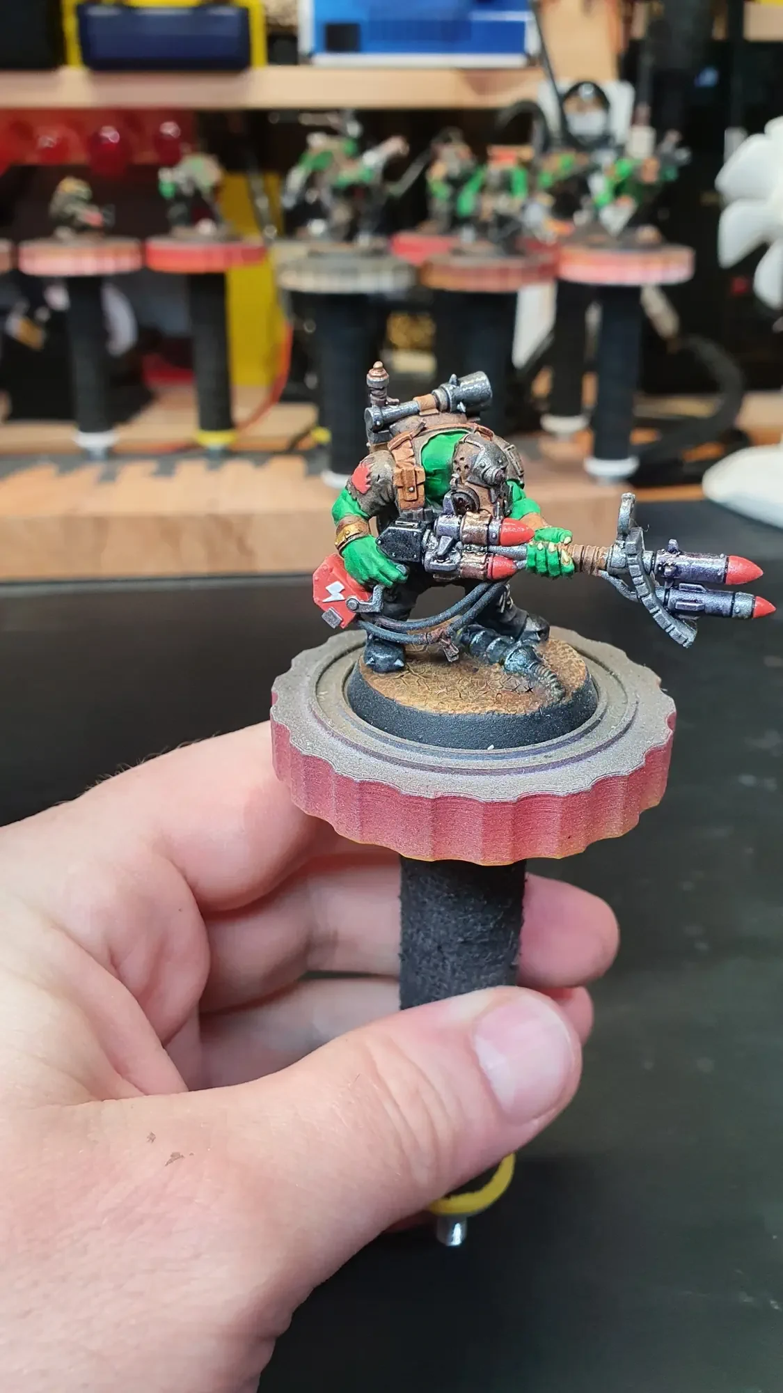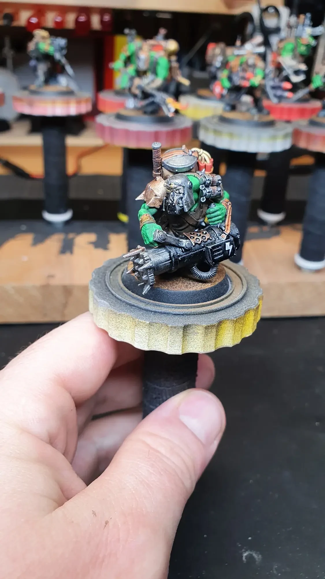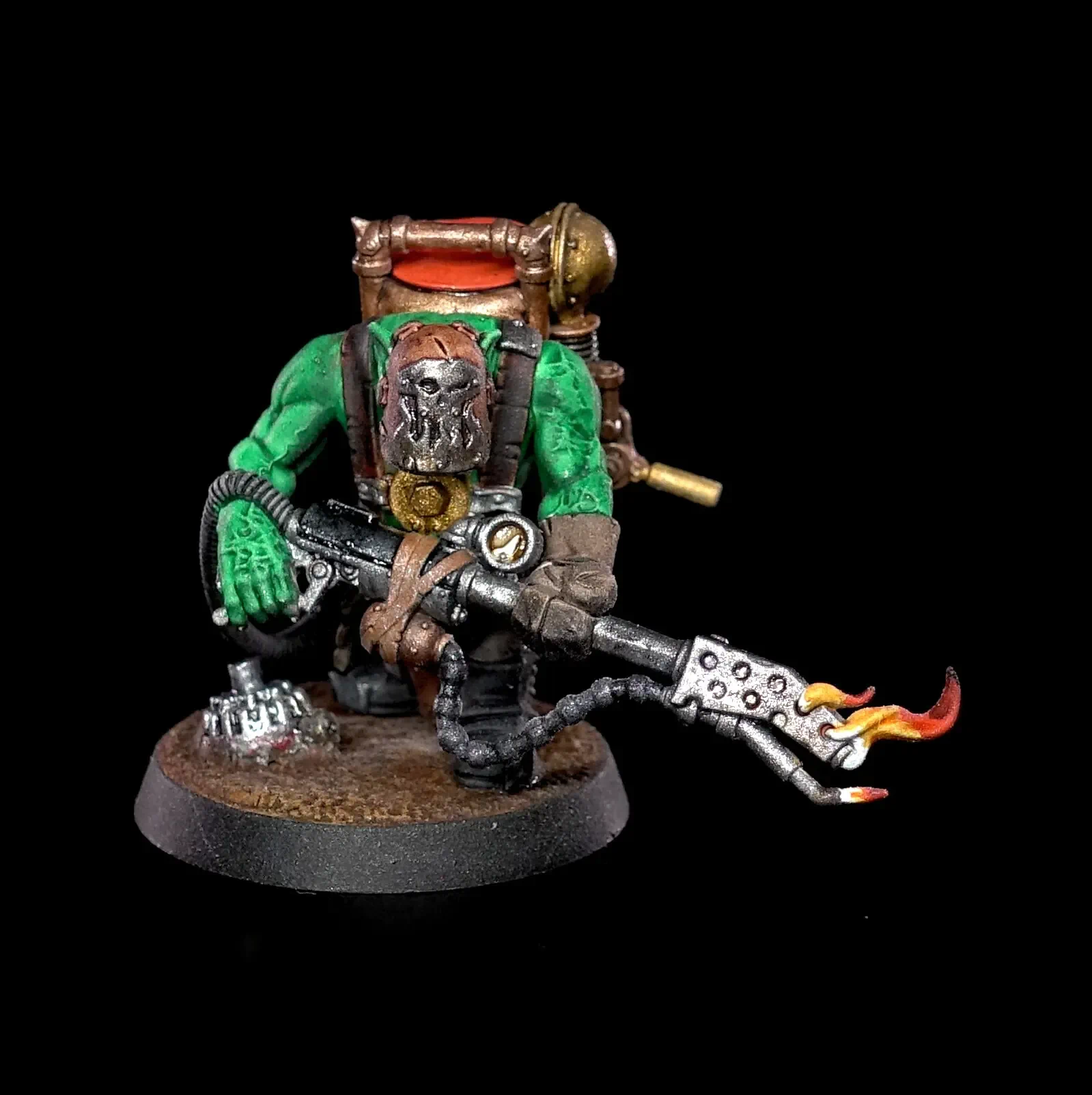 Aus der Kill Team Box Octarius von Games Workshop stammen die Ork Kommandos. Die reinen Mal-Arbeiten dauerten ca. 20 Stunden. Am Anfang ging es dank den Speed-Paints relativ schnell, aber all die Details der 12 Modelle dann hervor zu heben dauerte schlussendlich viel länger als erwartet.