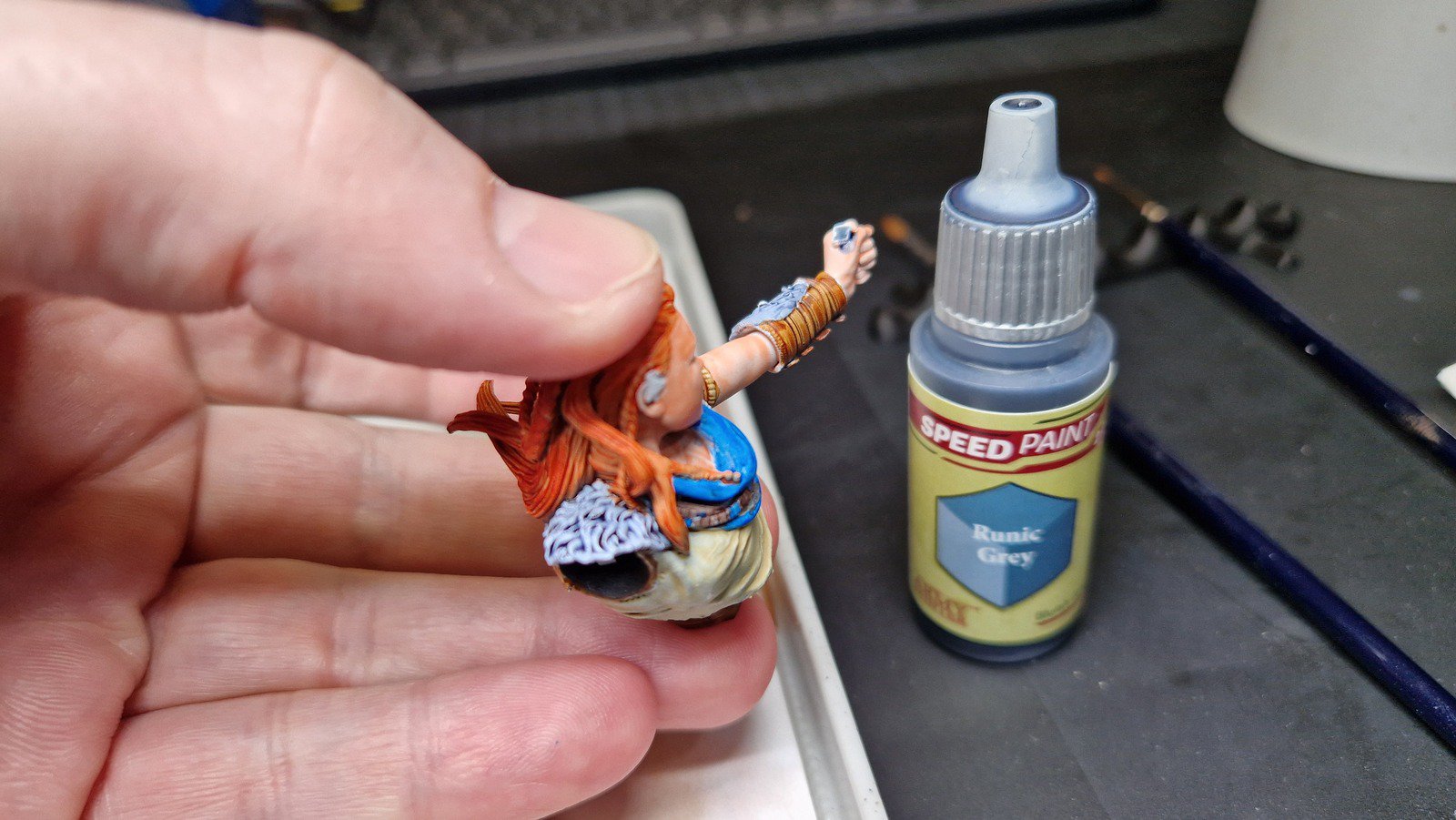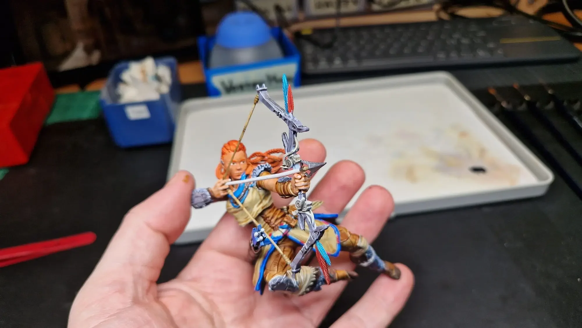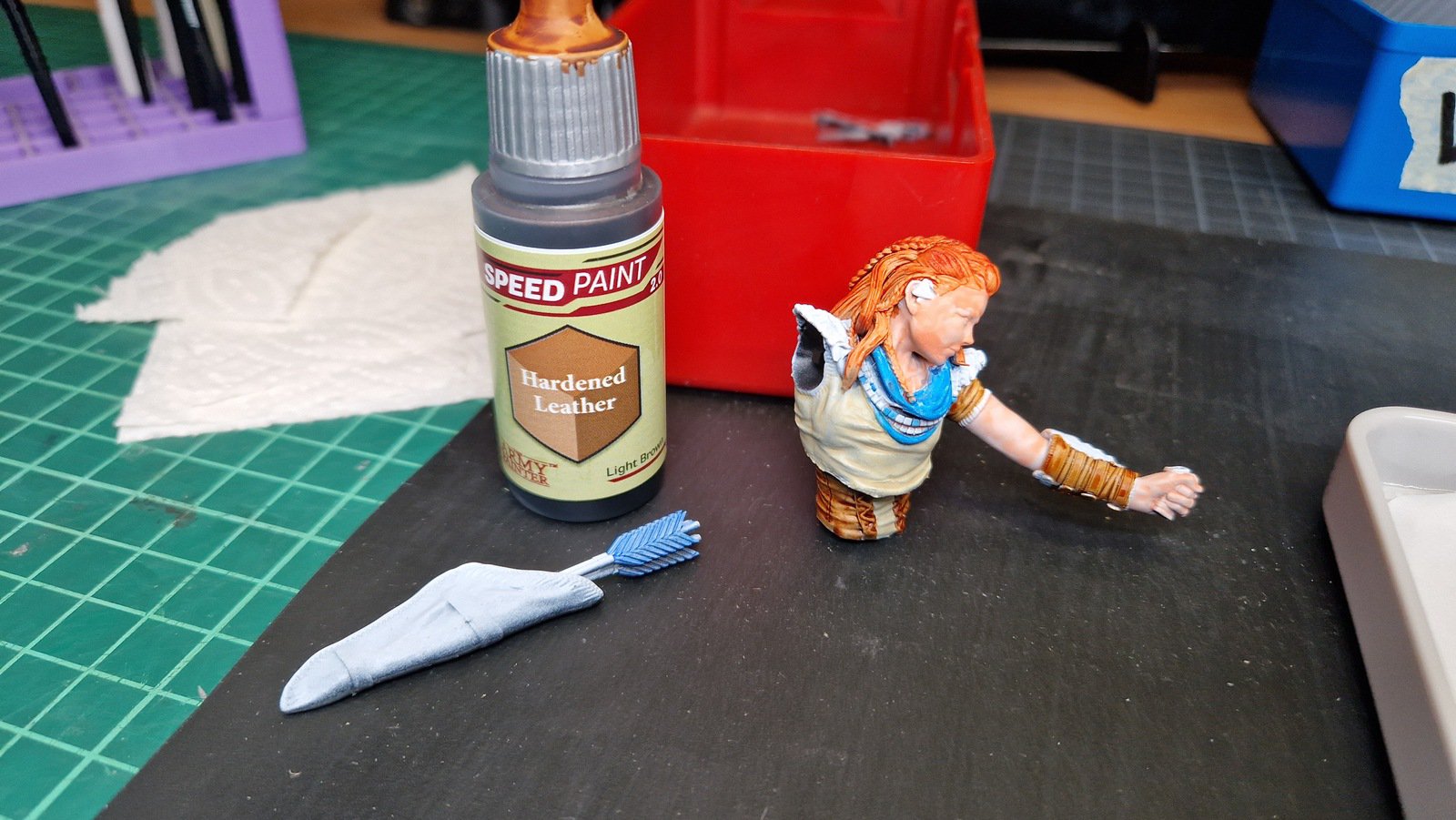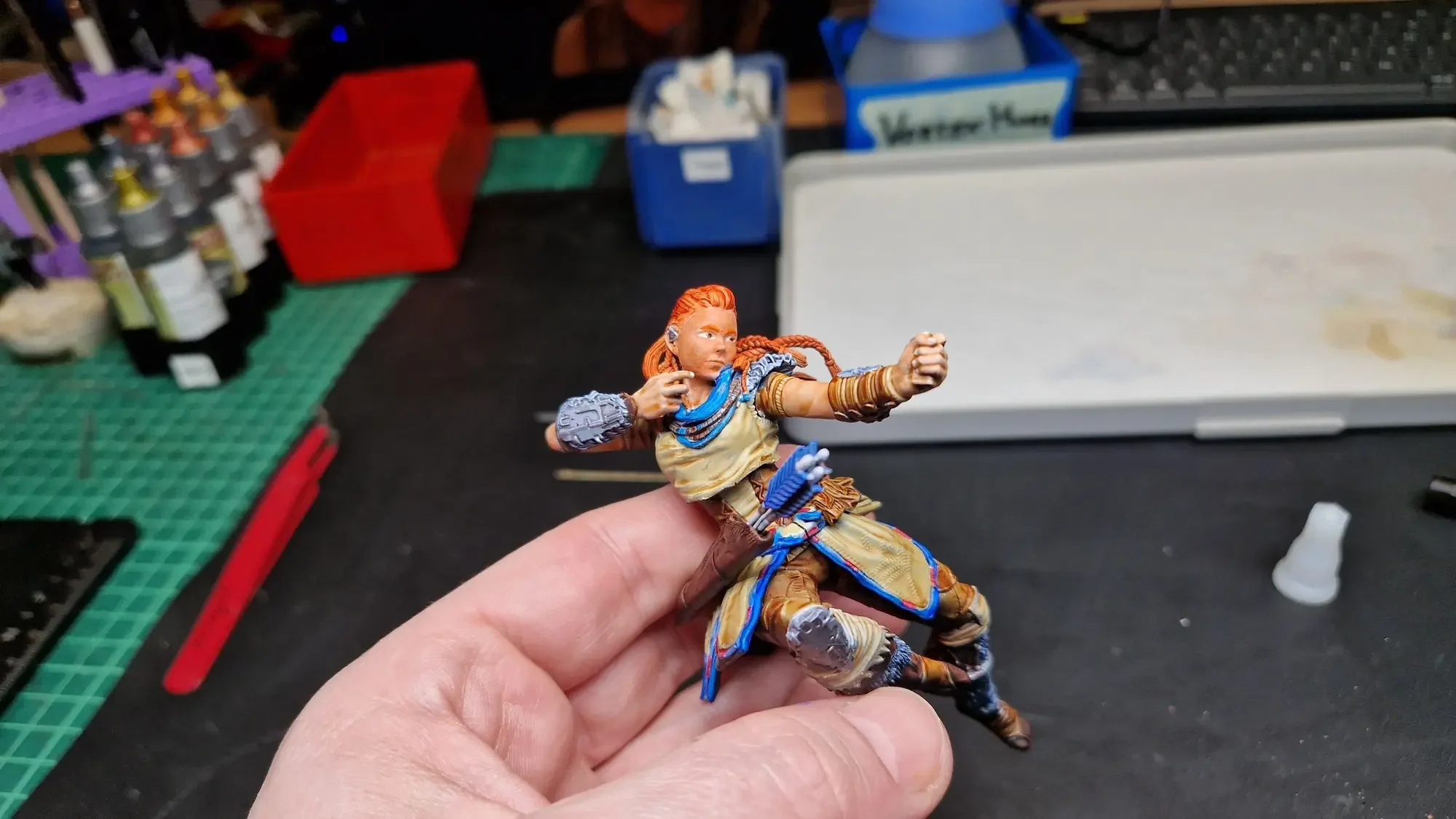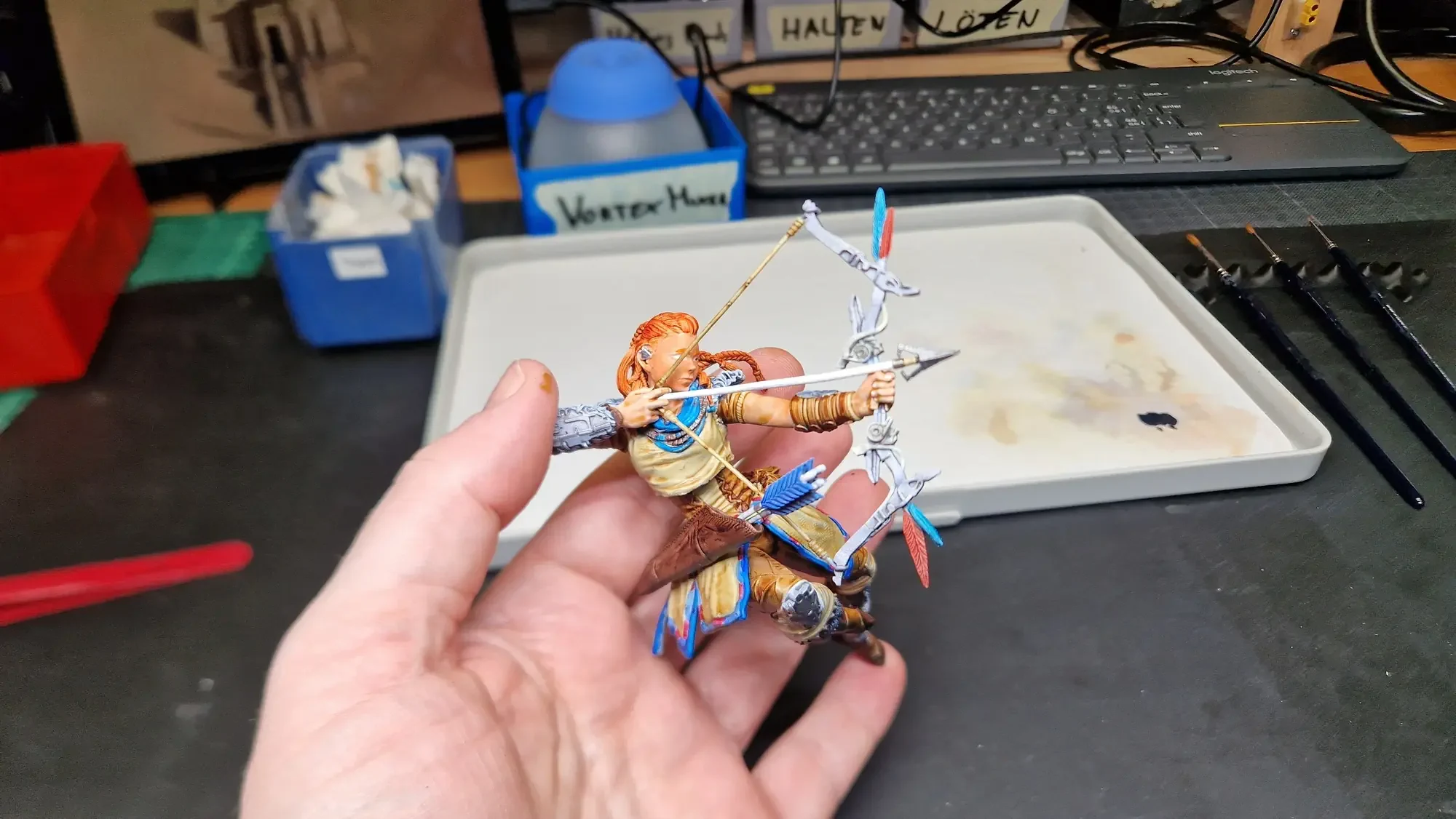 Im Dezember 2023 habe ich dann die Base fertiggestellt und auch Aloy mit den Speed Paints 2.0 von The Army Painter bemalt.