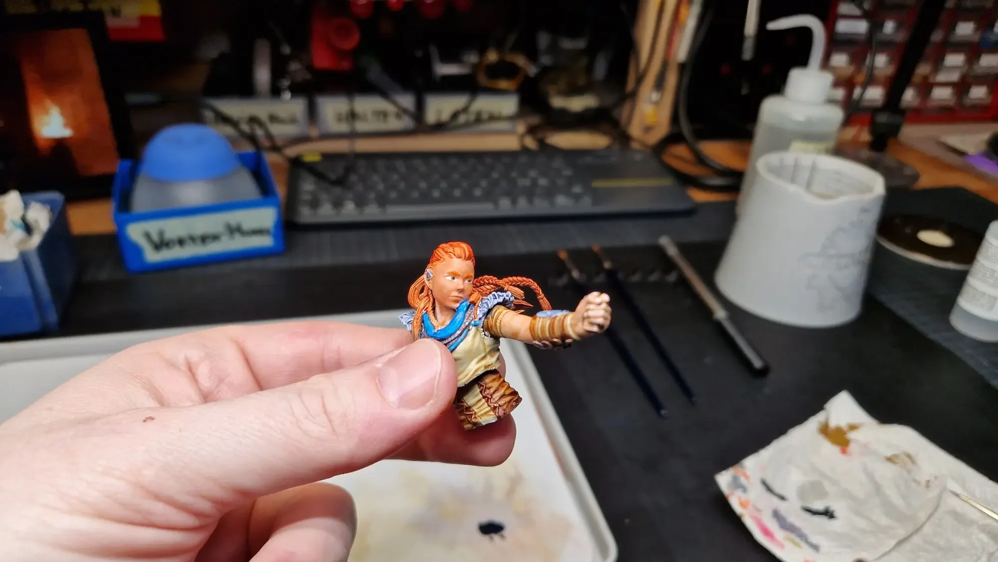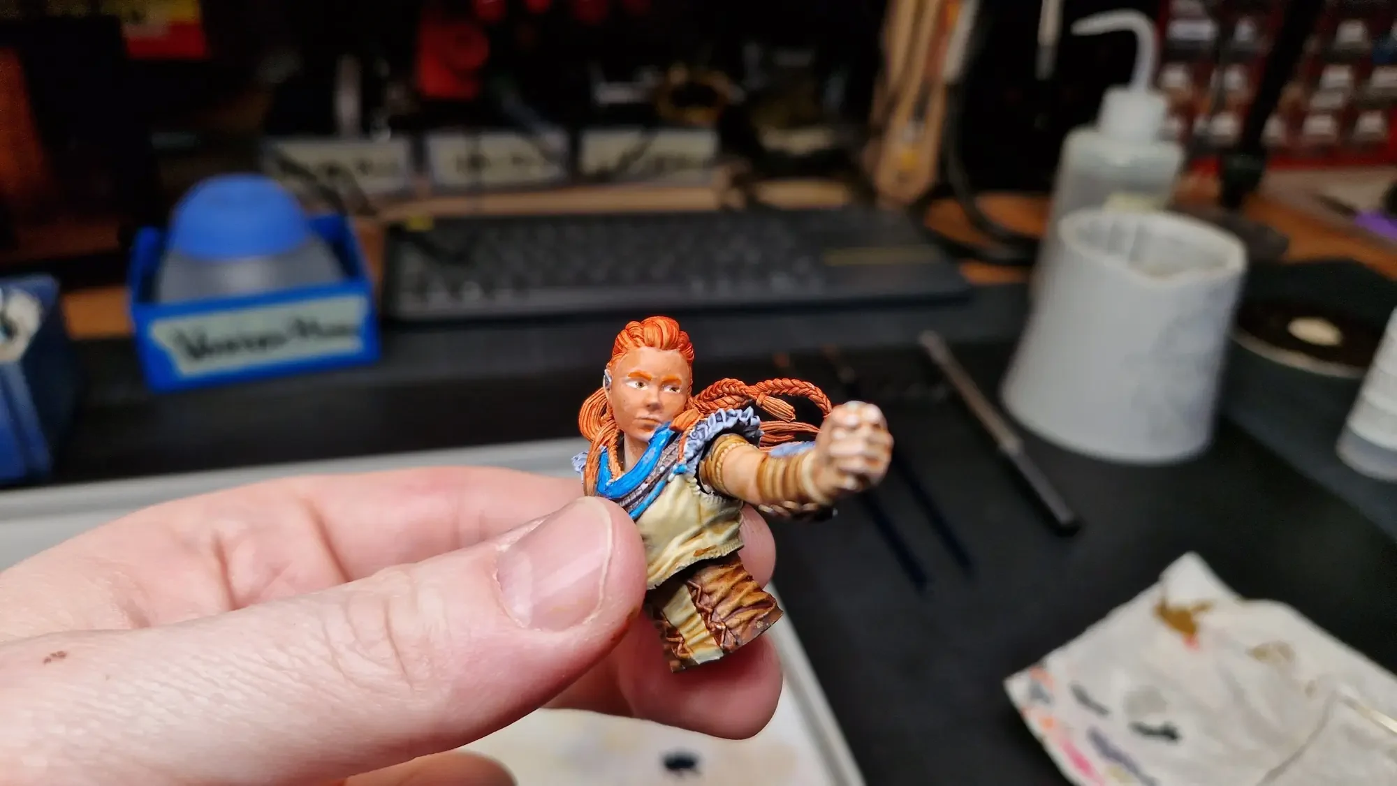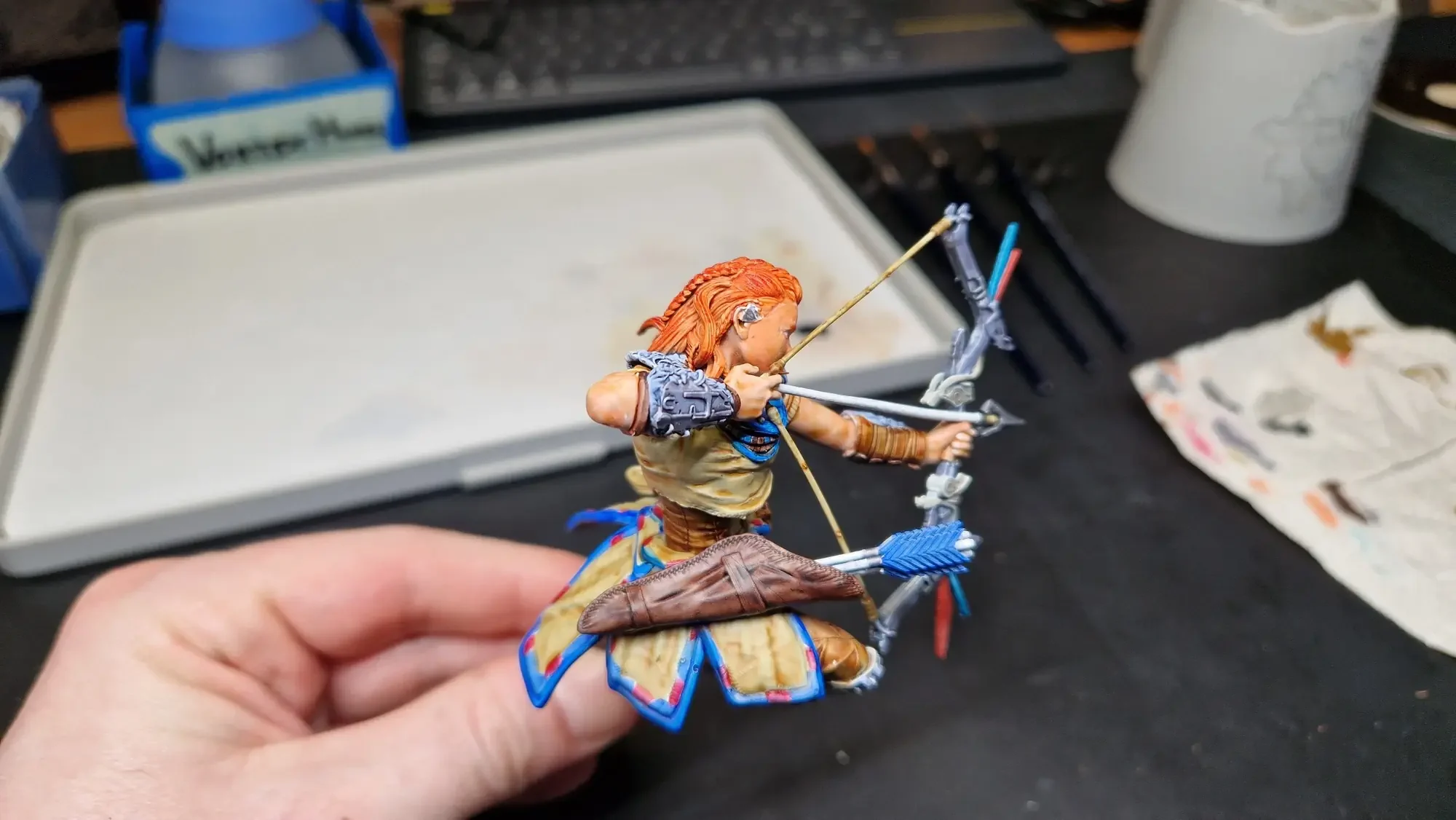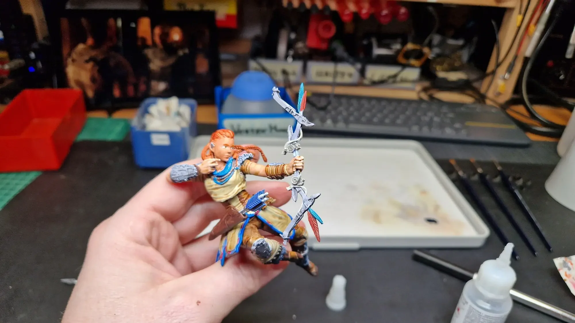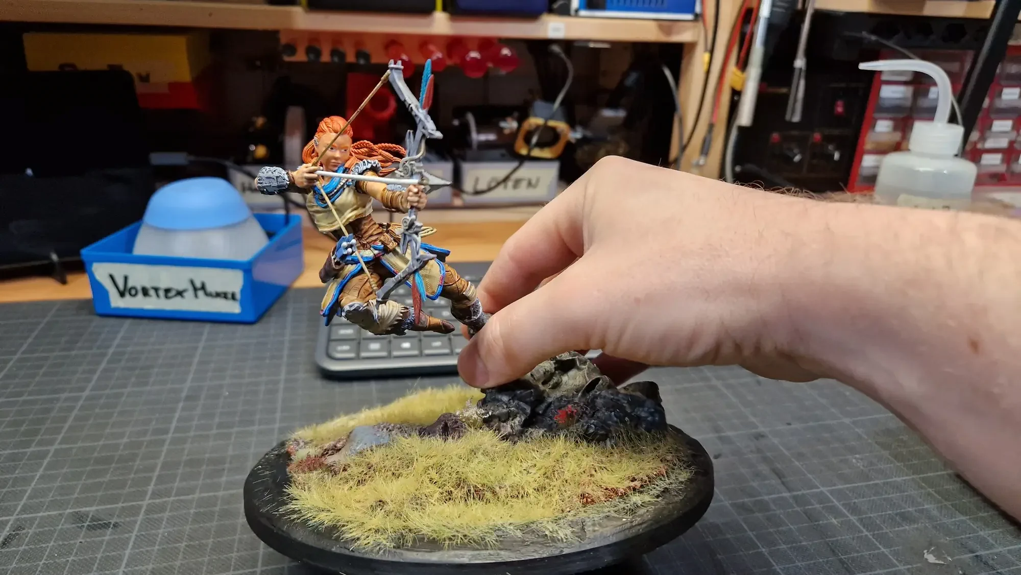 Im Dezember 2023 habe ich dann die Base fertiggestellt und auch Aloy mit den Speed Paints 2.0 von The Army Painter bemalt.