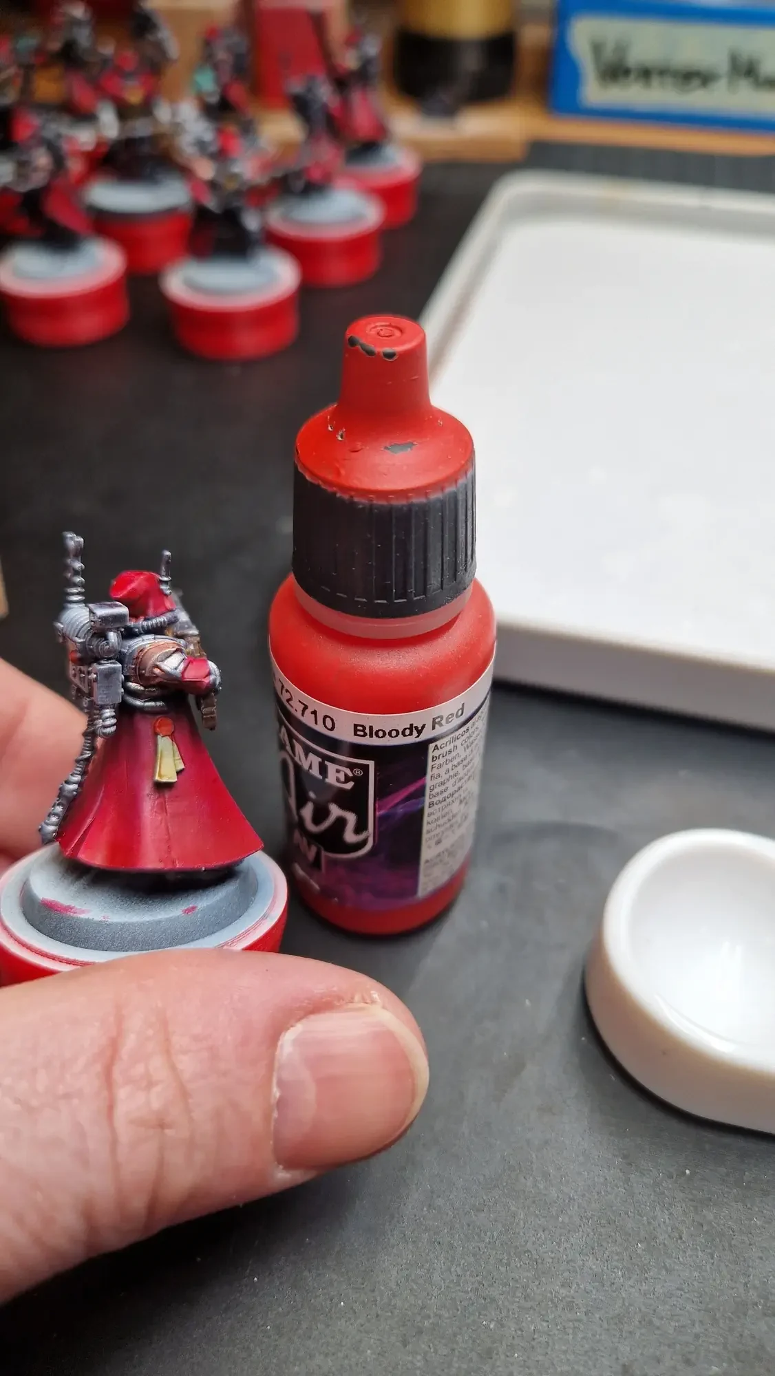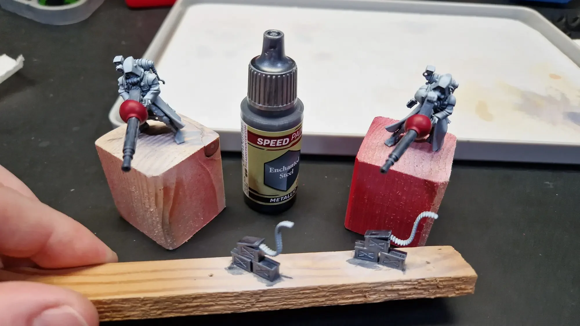 Ziemlich genau ein Jahr später habe ich dieses Projekt wieder aufgegriffen und auch den Rest der Figuren fertiggestellt und alles bemalen. Die jeweils verwendeten Farben habe ich mit den frisch bemalten Teilen durch Fotos dokumentiert.