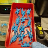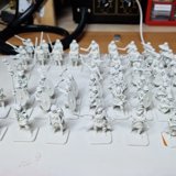 Zudem sind diese Figuren etwas kleiner als Warhammer-Figuren (“echte” 28 mm und nicht sog. Heroic Scale). Dies zusammen mit der Tatsache dass die 3D gedruckten Sachen viel empfindlicher sind haben zu vielen abgebrochenen Federn und Waffen geführt.