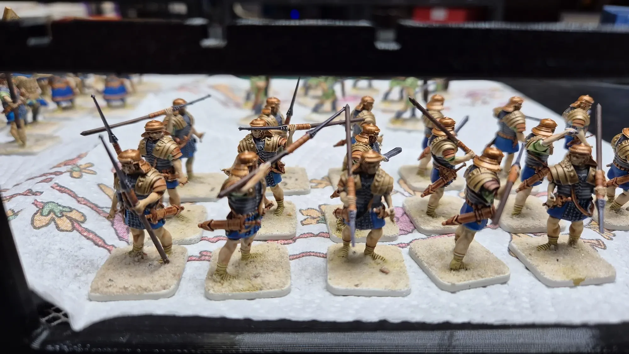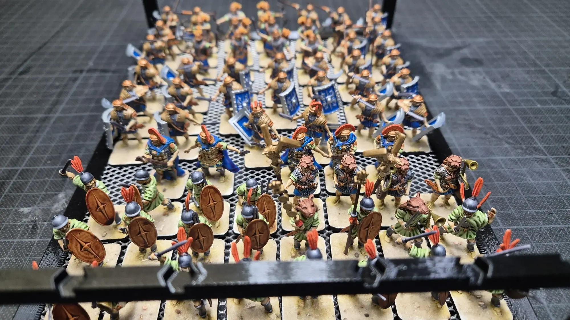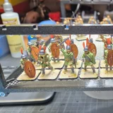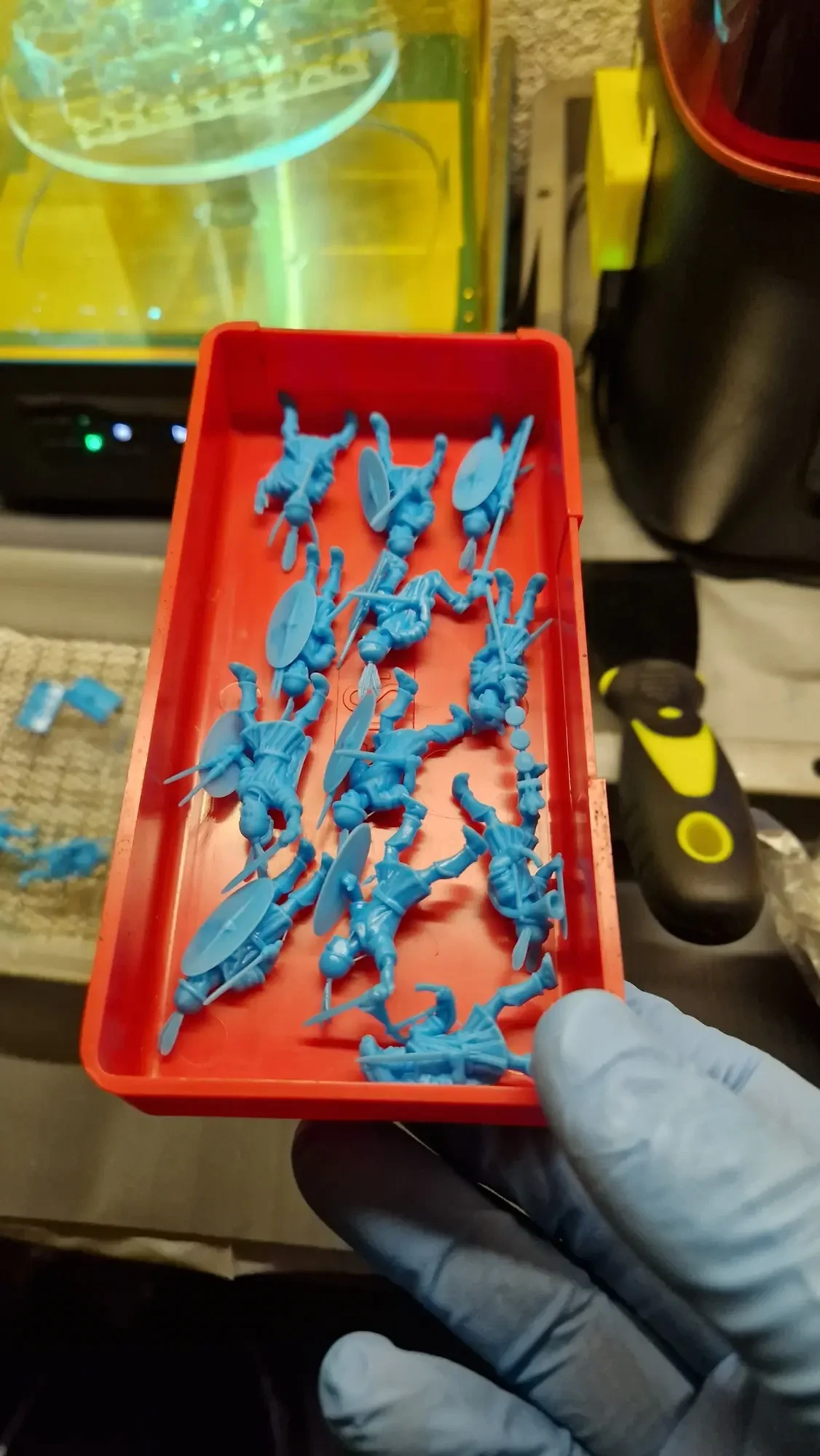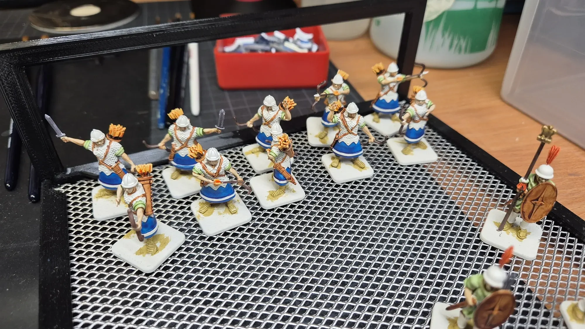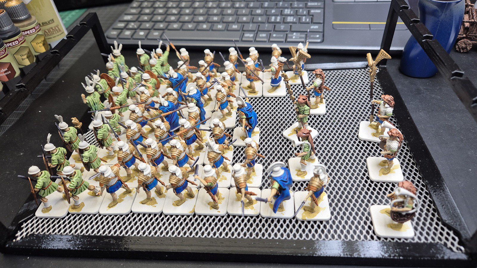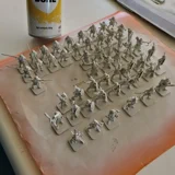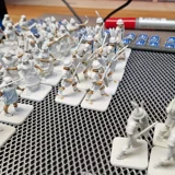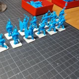 Zudem sind diese Figuren etwas kleiner als Warhammer-Figuren (“echte” 28 mm und nicht sog. Heroic Scale). Dies zusammen mit der Tatsache dass die 3D gedruckten Sachen viel empfindlicher sind haben zu vielen abgebrochenen Federn und Waffen geführt.
