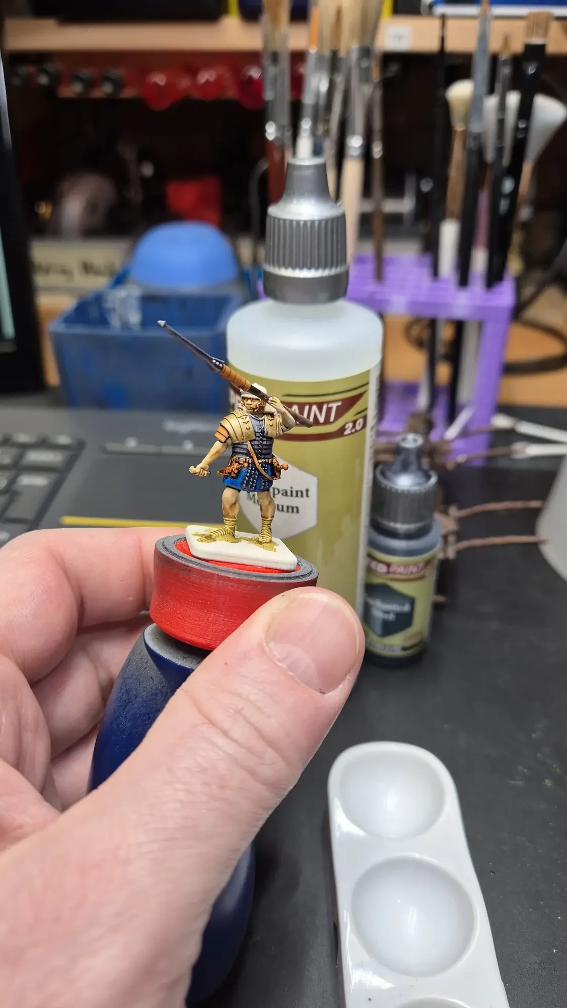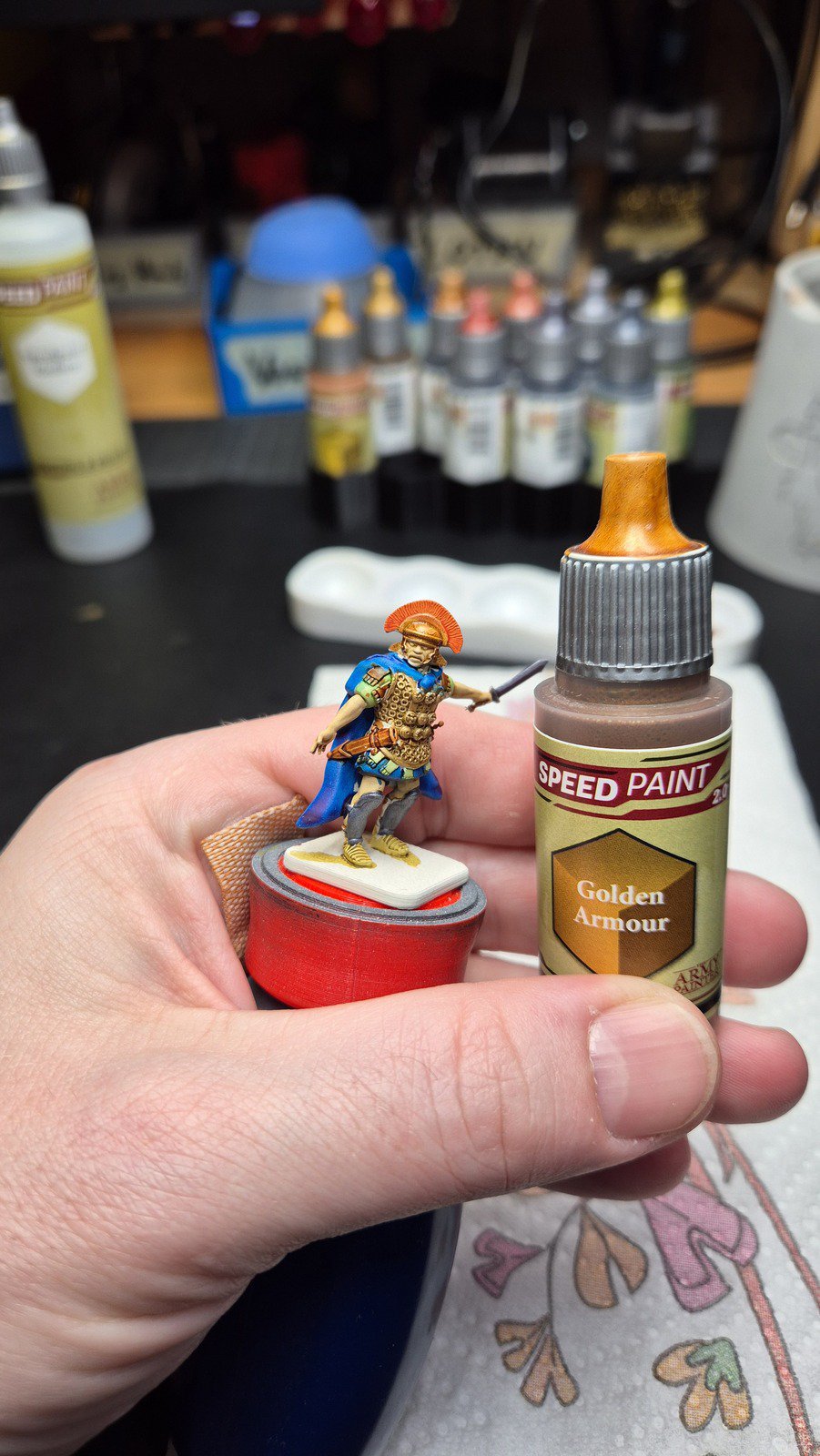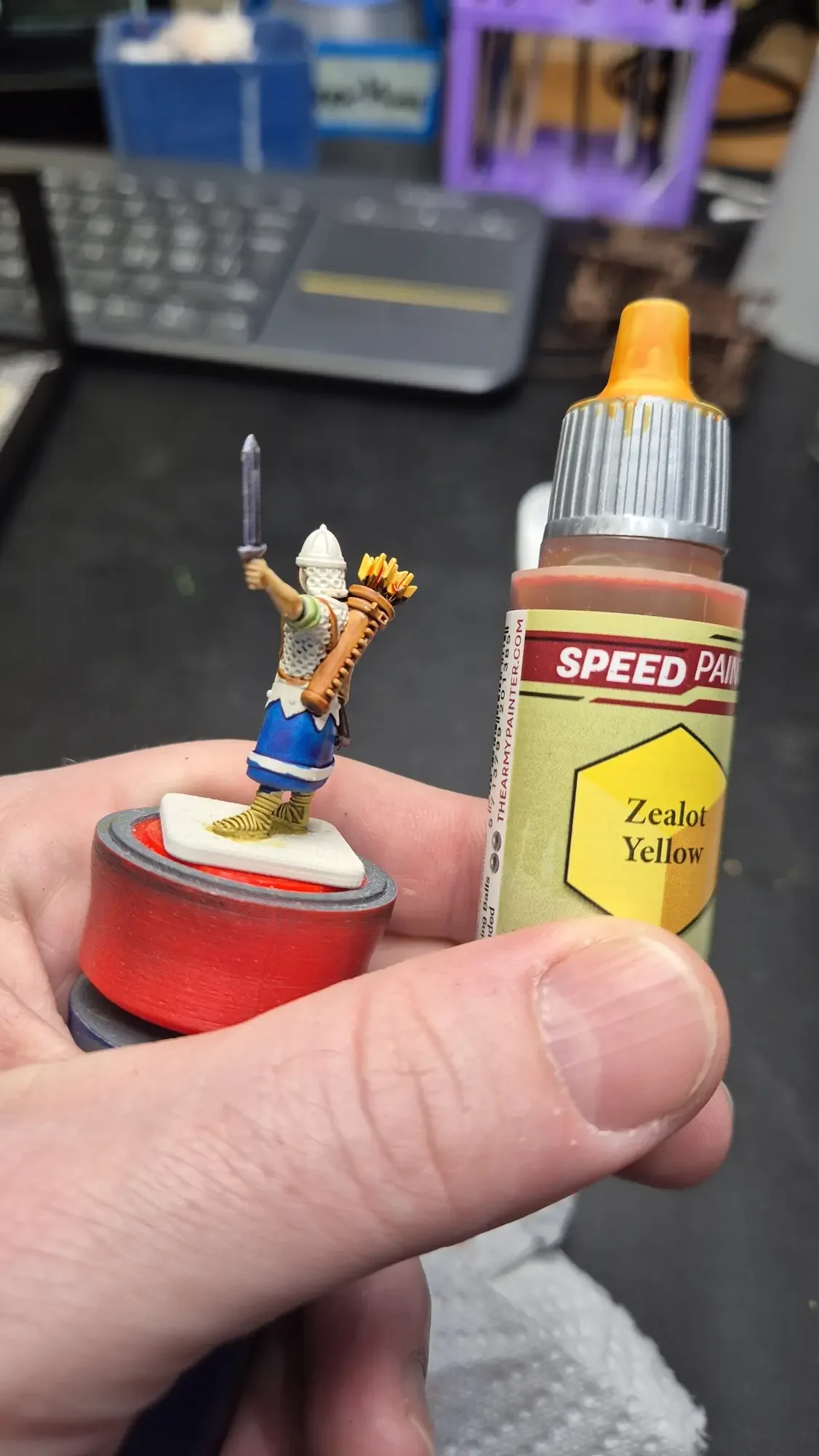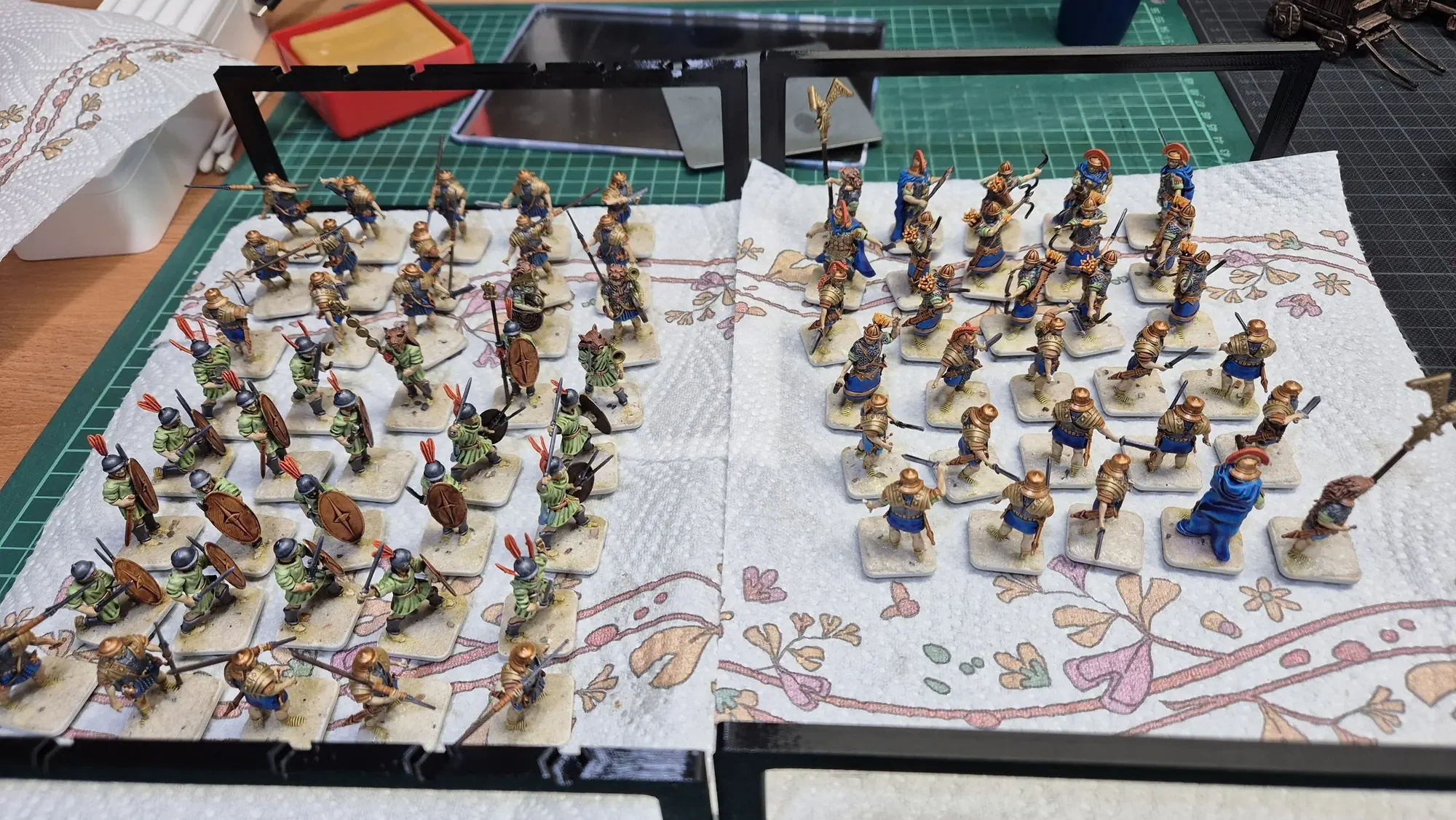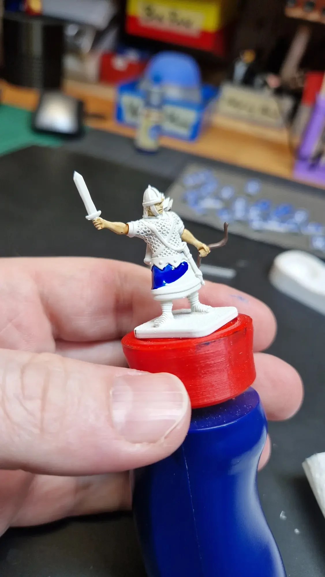 Zudem sind diese Figuren etwas kleiner als Warhammer-Figuren (“echte” 28 mm und nicht sog. Heroic Scale). Dies zusammen mit der Tatsache dass die 3D gedruckten Sachen viel empfindlicher sind haben zu vielen abgebrochenen Federn und Waffen geführt.