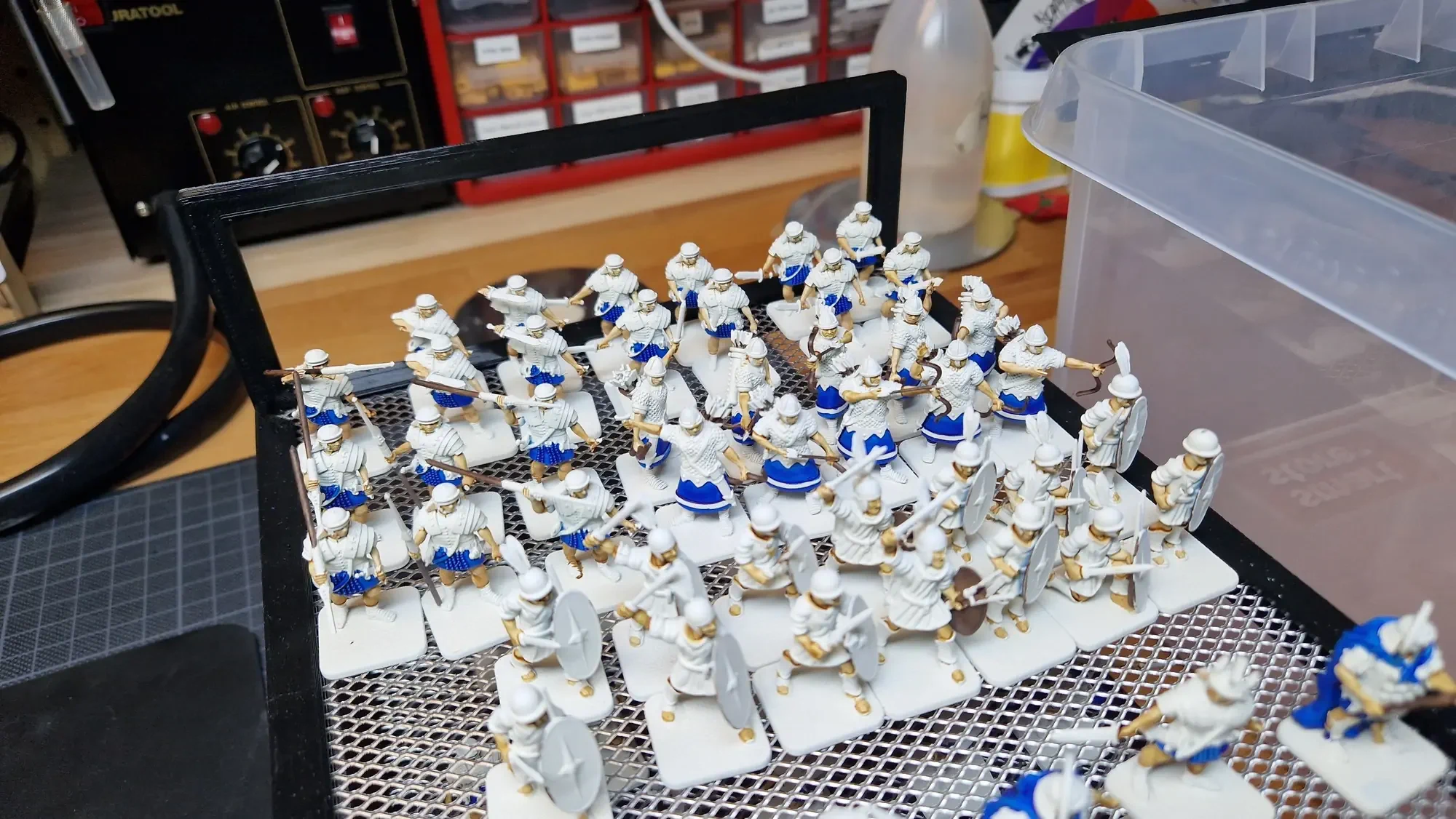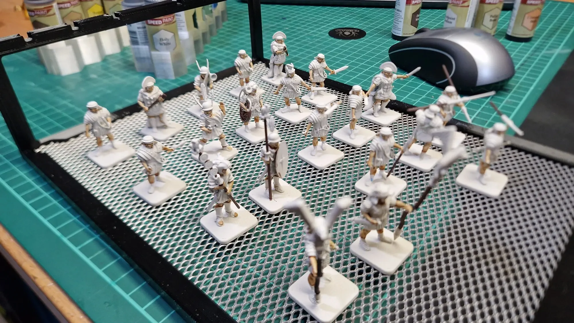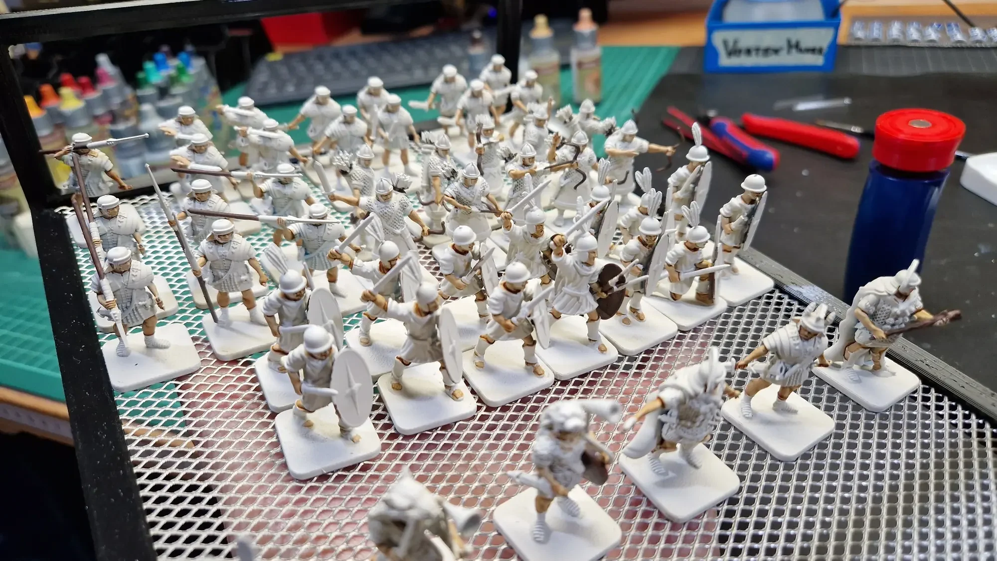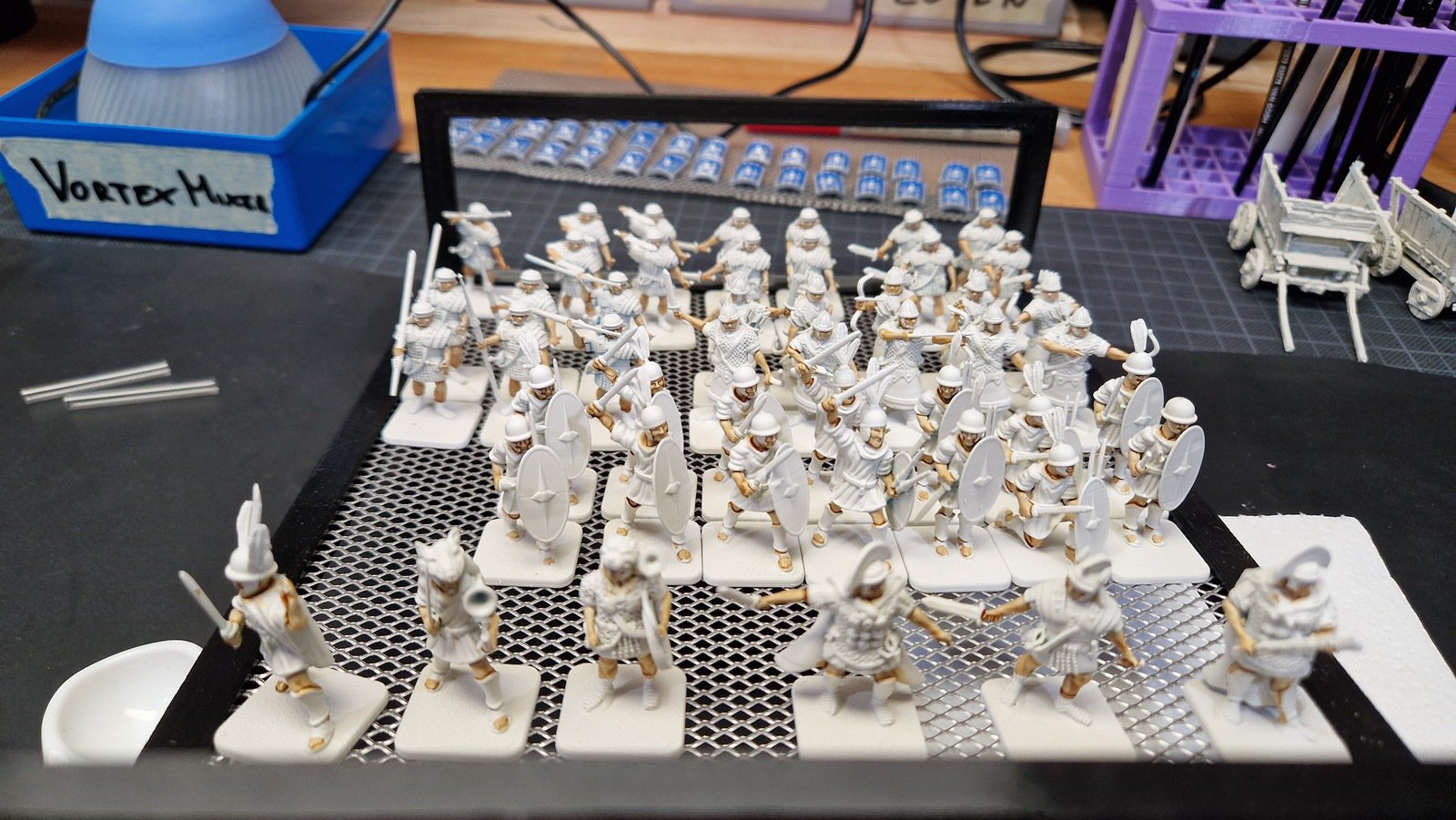Was ich bei diesem Projekt schmerzhaft gelernt habe ist, dass wenn ein Schritt eine Minute länger dauert, braucht das Projekt bei 70 Figuren sofort mehr als eine zusätzliche Stunde… 😅