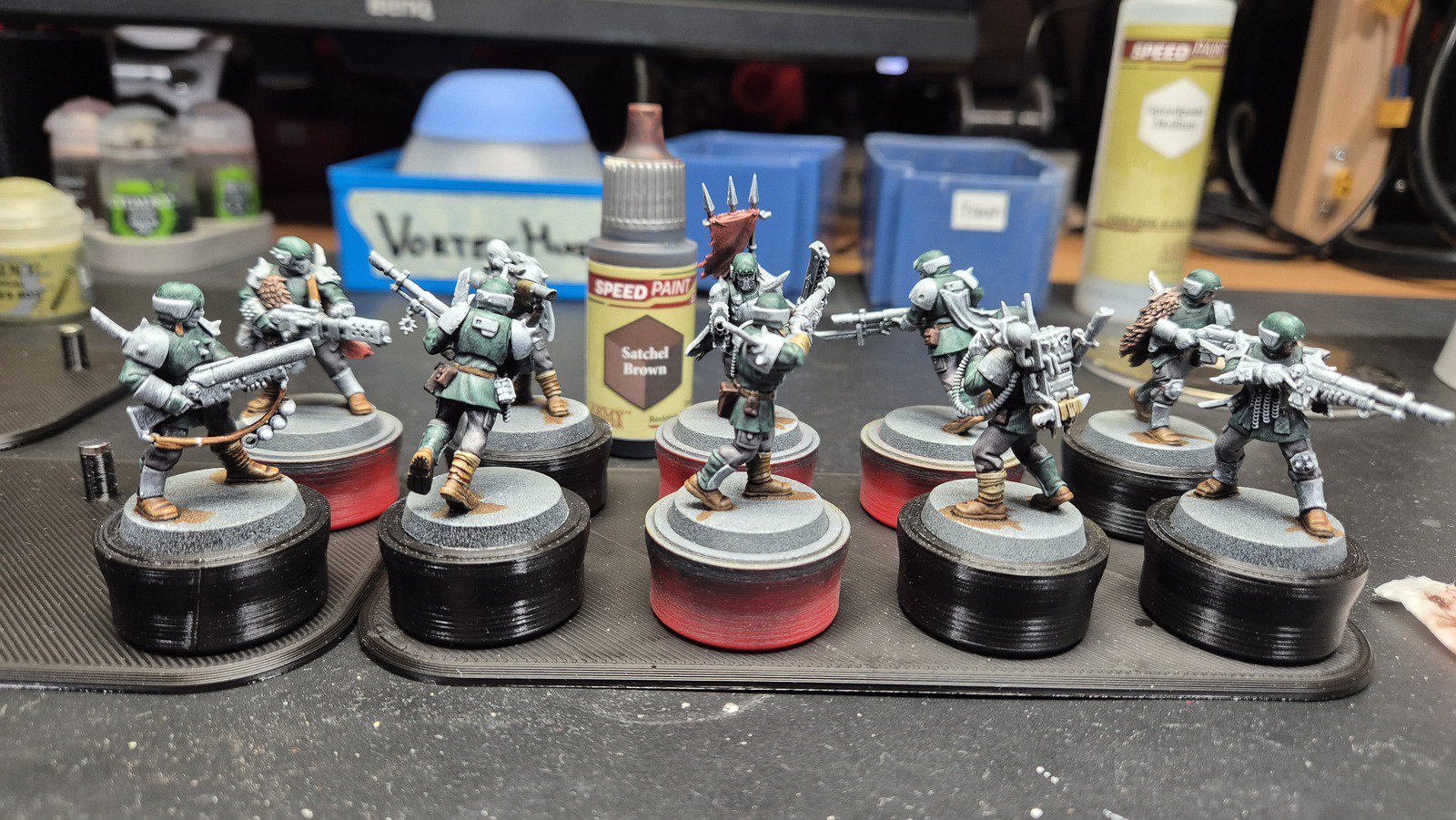 Auch bei diesen Minis habe ich meinen standardisierten Prozess angewandt und werde nur noch auf spezielle Dinge eingehen. Beschrieben ist dieser Prozess auf dem T’au Pathfinder Post.