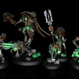 Necrons, eine der ältesten Spezies welche durch einen Handel mit Uralten Göttern zwar wie gewünscht unsterblich, dies aber in typischer Grimm-Darken Manier ungewollt in der Form von gefühlslosen Robotern wurden. Unter der Führung eines kalten und berechnenden Chronomanten schreitet der Hierotek-Zirkel voran, getrieben von der unstillbaren Gier nach Wissen und der Wiederherstellung necronischer Dominanz. Mit einer Gefolgschaft aus seelenlosen Konstrukt-Wächtern und unheilvollen Technomanten weben sie die Zeit selbst zu ihrem Vorteil, während sie unerbittlich nach verlorenem Ruhm streben.